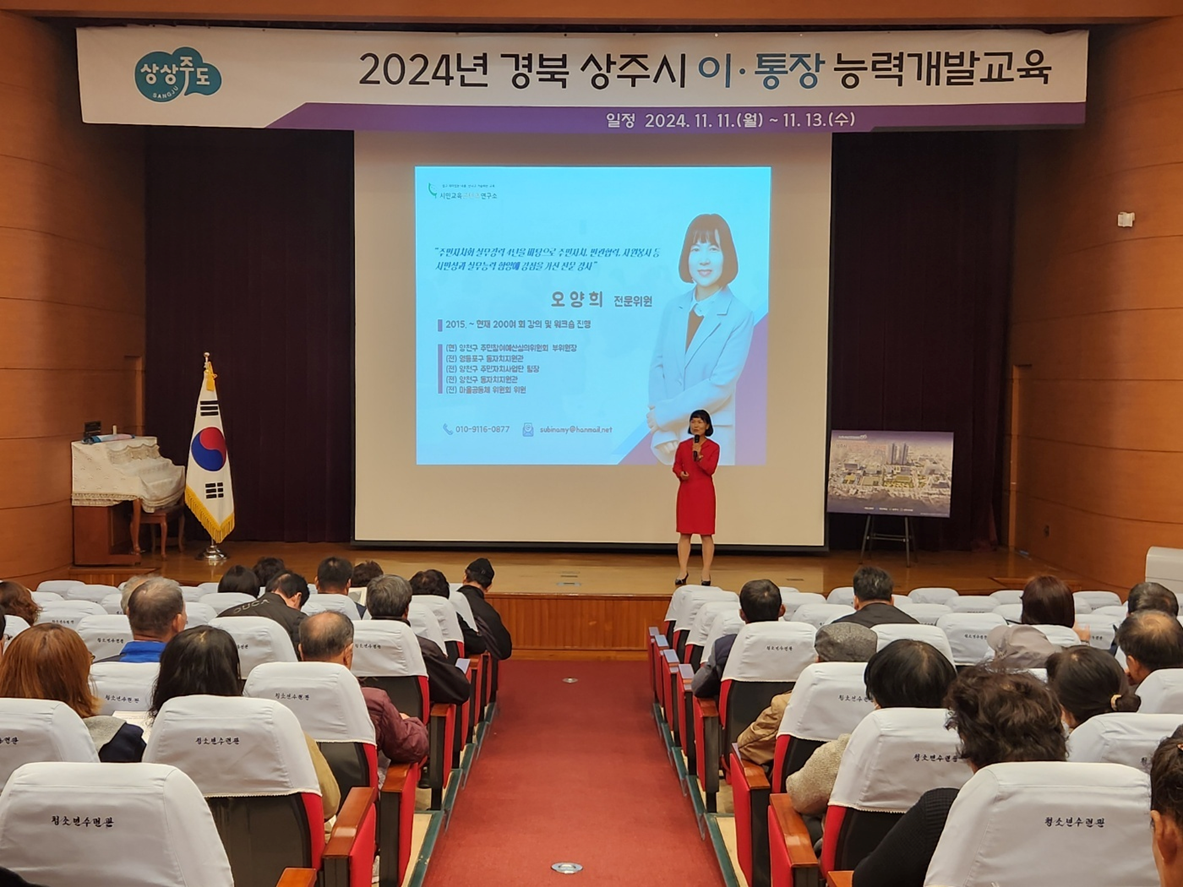 2024년 11월 11일~12일 <성장하는 공동체를 위한 좋은 이·통장 리더십>를 주제로 경북 상주시에서 이·통장 대상으로 통합교육을 진행했습니다.