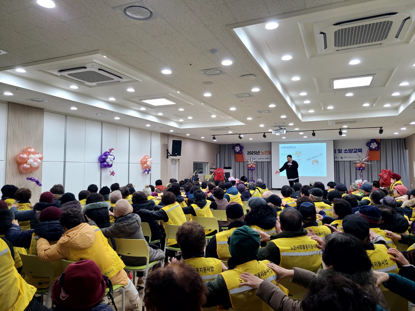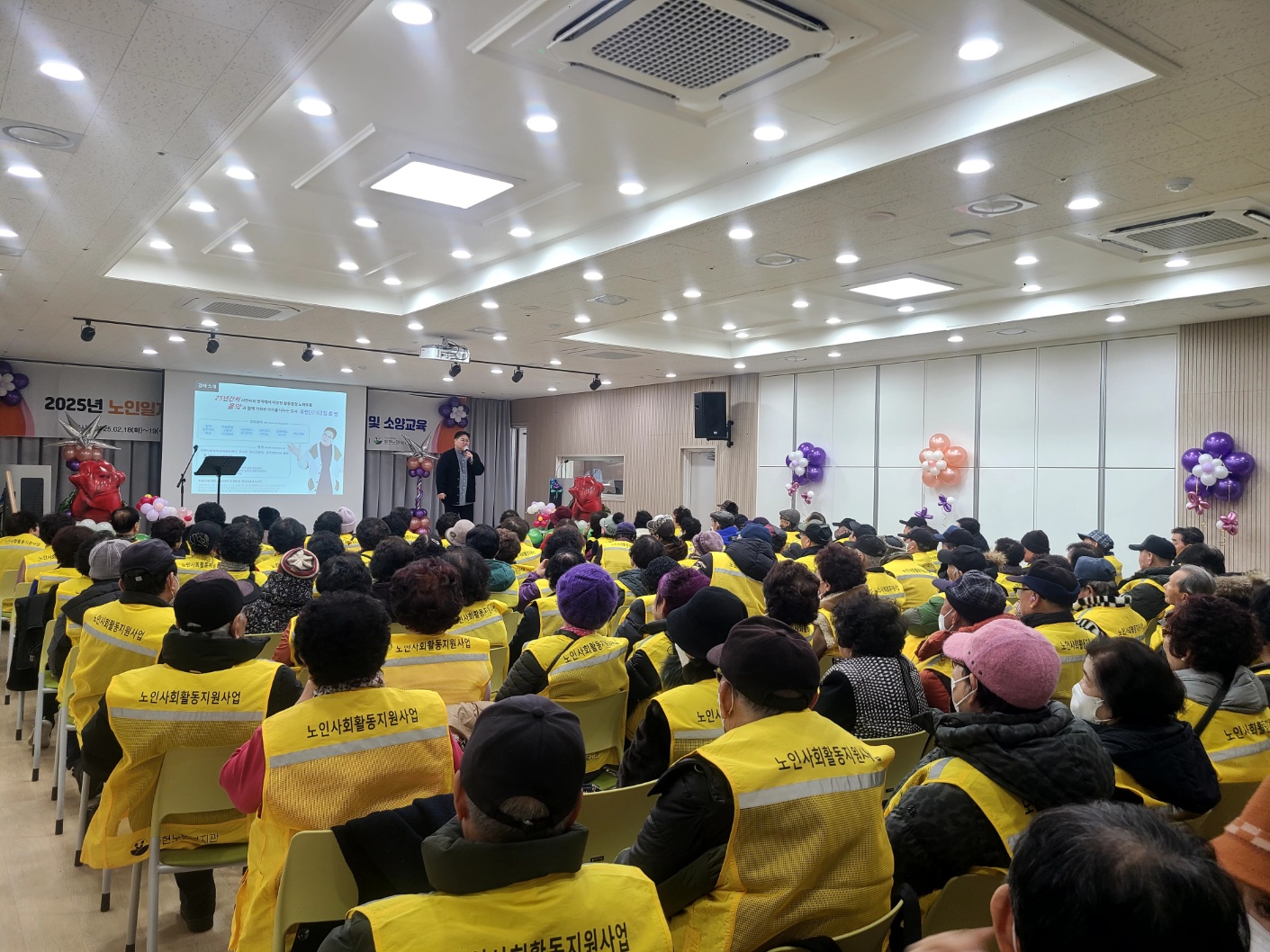 25년 2월 18일~19일, 인천송현노인복지관 어르신 일자리 참여자 300여 명을 대상으로 어르신 인권 및 행복한 노년생활 소양교육을 진행하였습니다. 주요강의 내용으로는 어르신들이 일자리 참여를 하면서 인간으로서 존엄과 가치를 보장받을 수 있는 인권 이야기를 중심으로 펼쳐나갔습니다.
