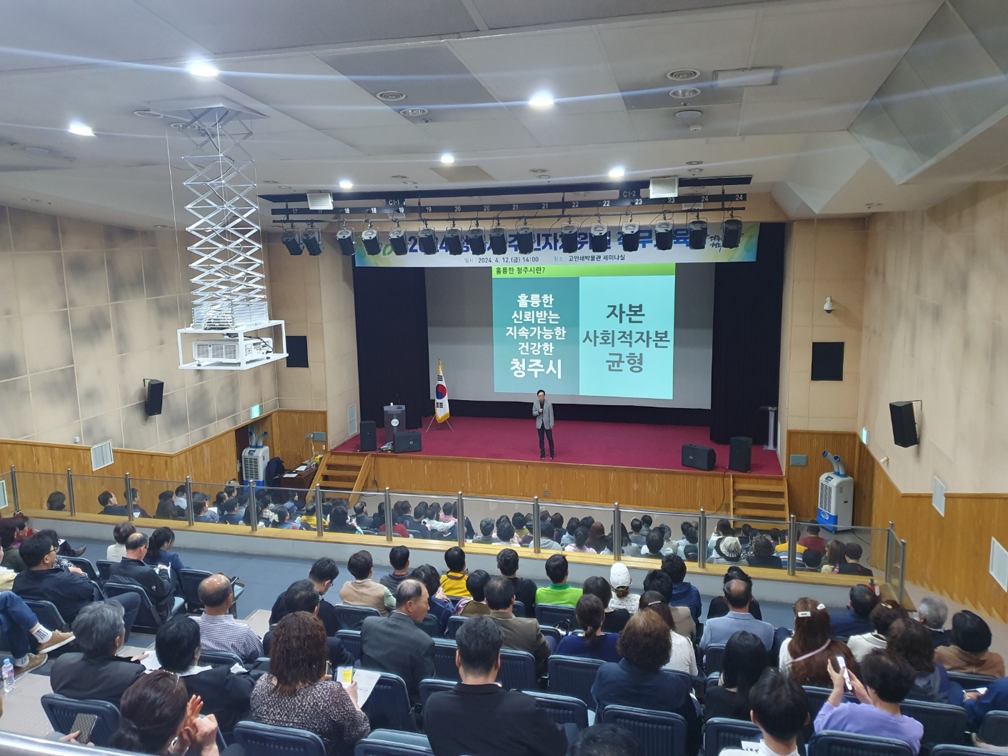청주시 주민자치위원 직무교육을 24년 4월 12일 오후 2~4시, 청주시 고인쇄박물관 세미나실에서 주민자치위원 200명(읍면동별 4~5명, 신규 주민자치위원 위주)을 대상으로 실시하였습니다.
