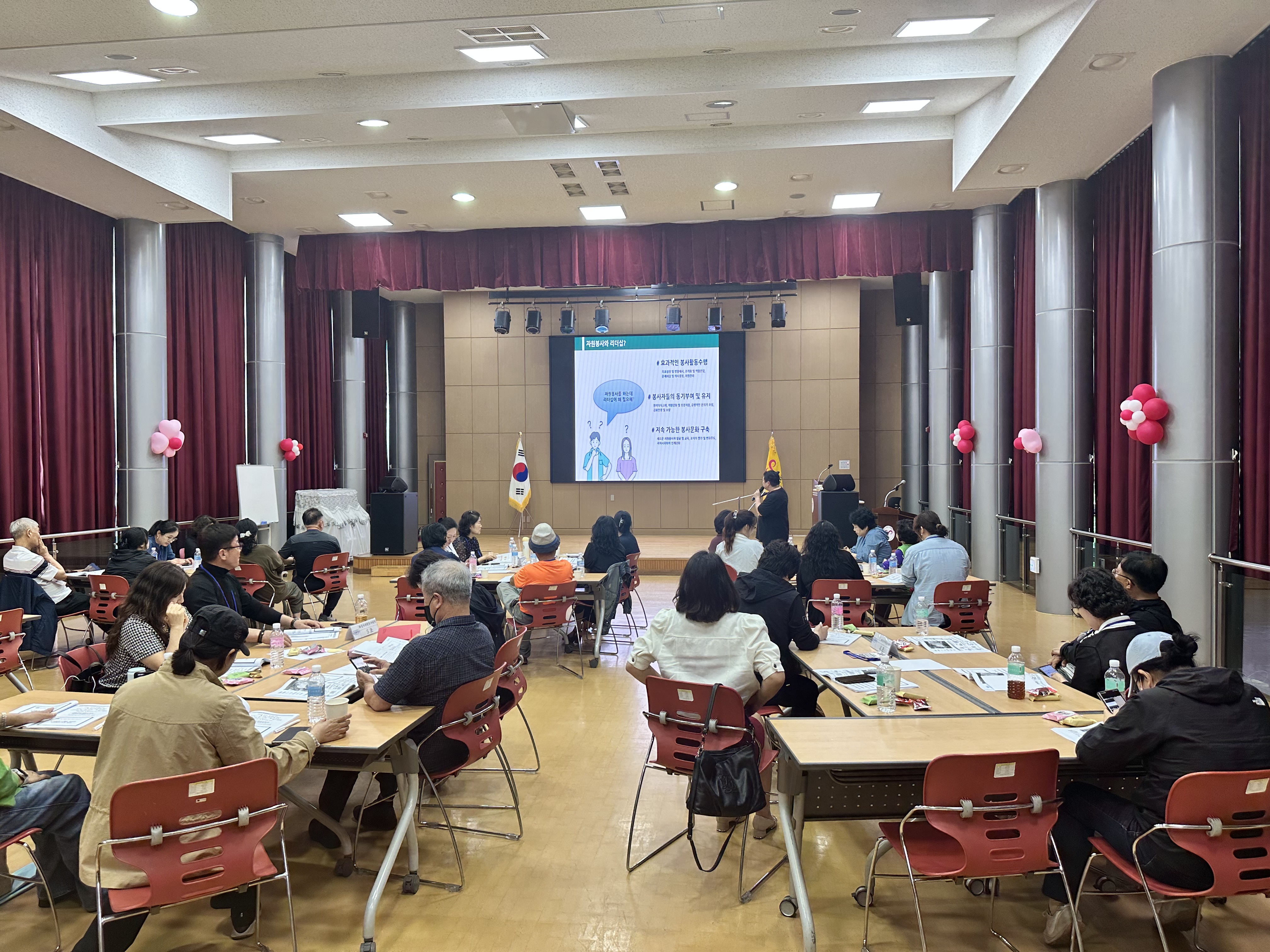 25년 5월 22일, 경기도 화성시 자원봉사 리더 40명을 대상으로 자원봉사대학 두 번째 시간, 음악이 있고 마음으로 표현하는 자원봉사 리더십에 대해 교육을 진행했습니다.