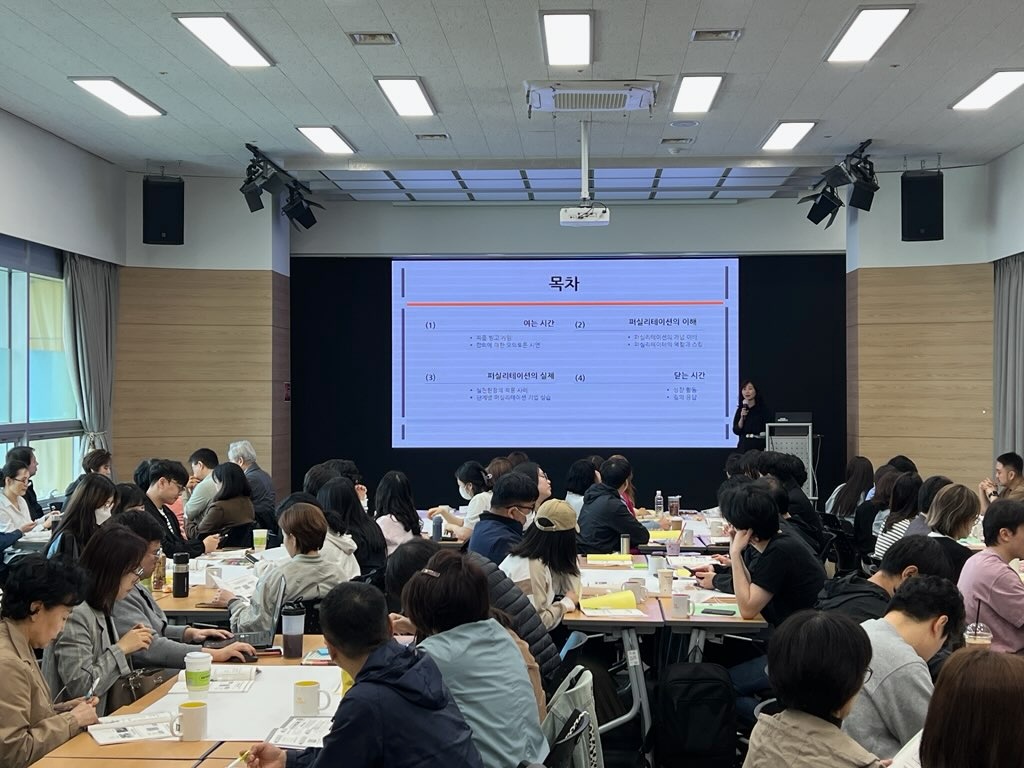2025년 4월 25일, 서울시사회복지사협회가 주관한 사회복지사 보수교육 ‘중간관리자과정’에서 80명의 사회복지사들과 함께 "사회복지 실무 현장에서 활용 가능한 퍼실리테이션 스킬"을 주제로 강의를 진행했습니다.