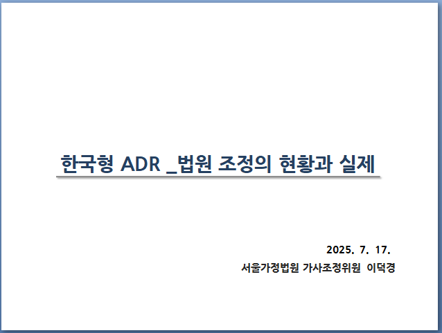 모쪼록 한국에서의 갈등조정의 의미가 변질되지 않고 그 기본정신을 잘 이어갈 수 있기를 기대하면서 저 또한 그 기본정신을 잊지 않는 조정위원이 되어야겠다는 다짐을 새롭게 해봅니다.