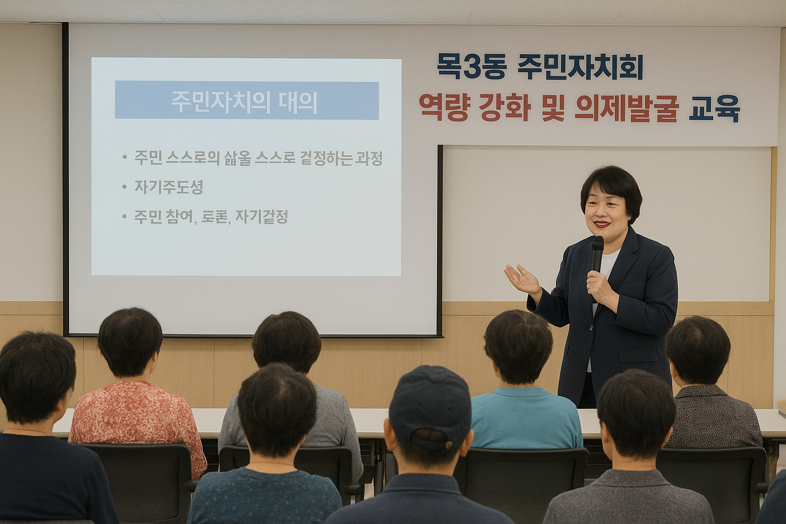 이번 교육은 주민자치회의 본질을 되새기고, 실질적인 활동의 방향을 함께 고민하는 뜻깊은 시간이었습니다. 끝으로 마을 축제를 앞두고 분주한 상황 속에서 강의에 적극적으로 참여하며 피드백을 주신 목3동 주민자치회에 감사를 드립니다.