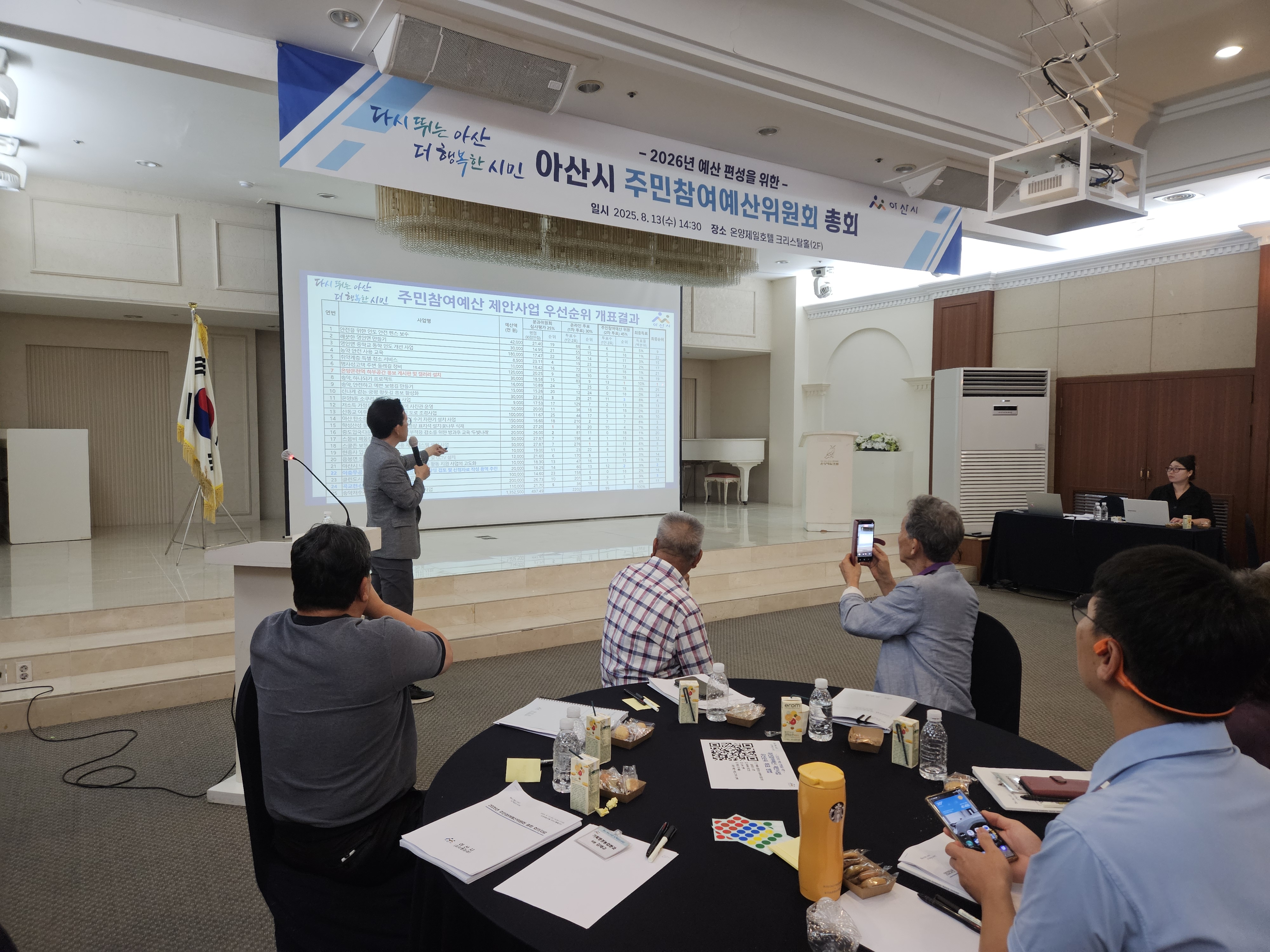 2026년도 아산시 예산 편성을 위한 시민들의 목소리가 한자리에 모였습니다. 2025년 8월 13일, 온양제일호텔 크리스탈홀에서 열린 2025년 아산시 주민참여예산위원회 총회는 시민교육콘텐츠연구소 강정모 소장과 전문위원들의 체계적인 운영 아래, 제안 사업의 우선순위를 결정하는 숙의의 장이었습니다. 시민들의 삶과 직결된 총 25개 사업의 운명을 결정한 그 현장을 자세히 들여다보겠습니다.