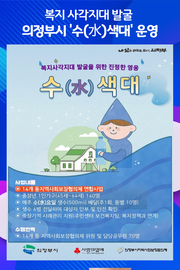 워크숍에서 강조된 중장년 및 청년 위험군 발굴의 필요성은 생애주기별 맞춤형 지원 전략으로 이어지는데 도움이 되었을 것으로 생각합니다. 특히 의정부시 지역사회보장협의체가 주도하는 '수(水)색대'(생수 전달 안부 확인) 사업은 중장년 위기가구에 대한 저(低)관여, 고(高)빈도의 선제적 개입 모델이며, 좋은 모델과 성과로 생각됩니다. 이는 인적 안전망(Human Safety Net)을 활용하여 고독사 위험군 발굴에 대한 시민적 관심과 협조를 유도하는 데 큰 역할을 하고 있다고 보입니다.