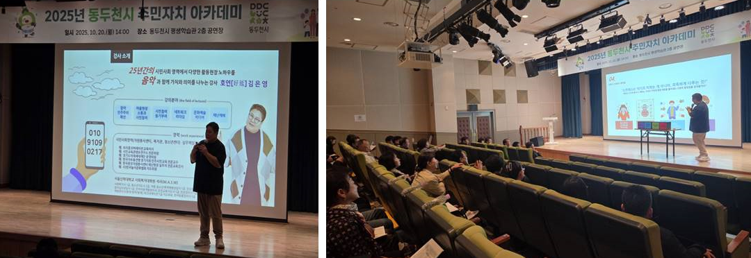 2025년 10월 20일, 동두천시 주민자치위원 약 150명을 대상으로 '마음 쉼표, 주민자치 힐링 스토리' 아카데미가 진행되었습니다. 이번 교육은 민-관 소통의 최전선에서 지역 사회의 발전을 이끌고 있는 주민자치위원들의 헌신적인 활동을 지지하고, 그들의 지속 가능한 건강한 활동 환경을 조성하기 위해 기획되었습니다.