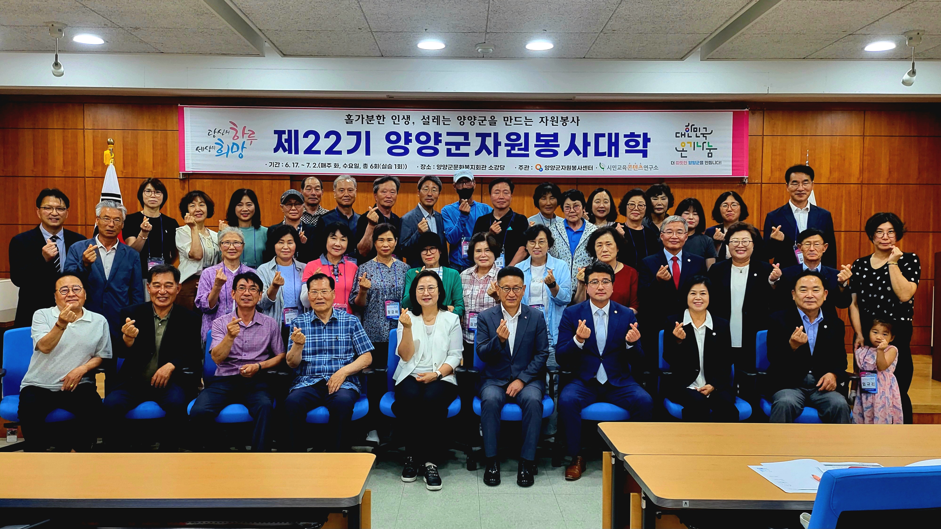 2025년 제22기 양양군자원봉사대학은 "홀가분한 인생, 설레는 양양군을 만드는 자원봉사"라는 주제 아래, 건강한 일상과 공동체를 살고자 하는 양양군민 40여 명을 대상으로 6월 17일부터 7월 2일까지(총 6회) 진행되었습니다. 이번 교육은 단순히 봉사 기술을 익히는 것을 넘어,