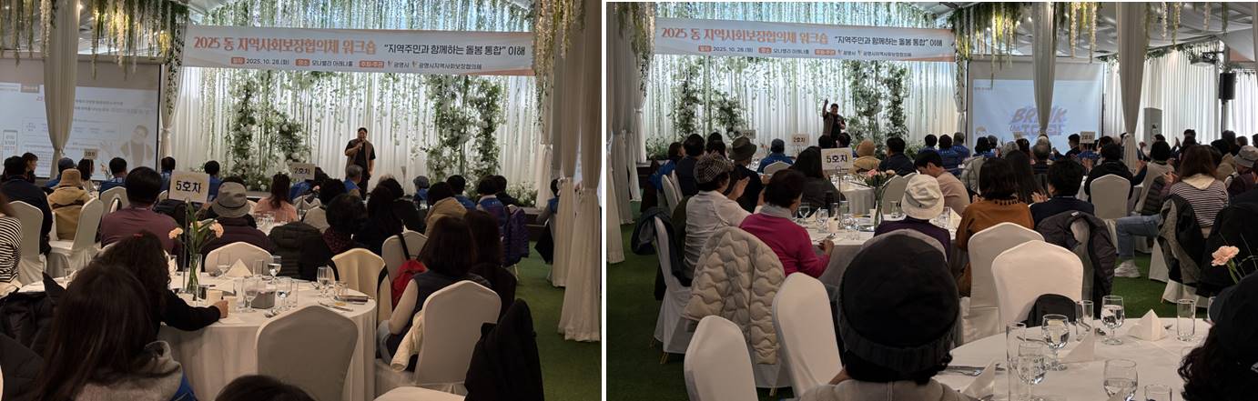 지난 2025년 10월 28일(화), 광명시 지역사회보장협의체 19개 동 위원 300여 명이 충남 아산시 모나밸리에 모여 '2025년 동 지역사회보장협의체 워크숍'이 개최되었습니다. 이날 김은영 전문위원(시민교육콘텐츠연구소)은 "함께 만드는 광명: 연결의 힘"이라는 주제로 특별 강연을 진행하며, 복지 활동의 활력과 민관 협력의 시너지를 극대화하는 감동적인 시간을 선물했습니다.