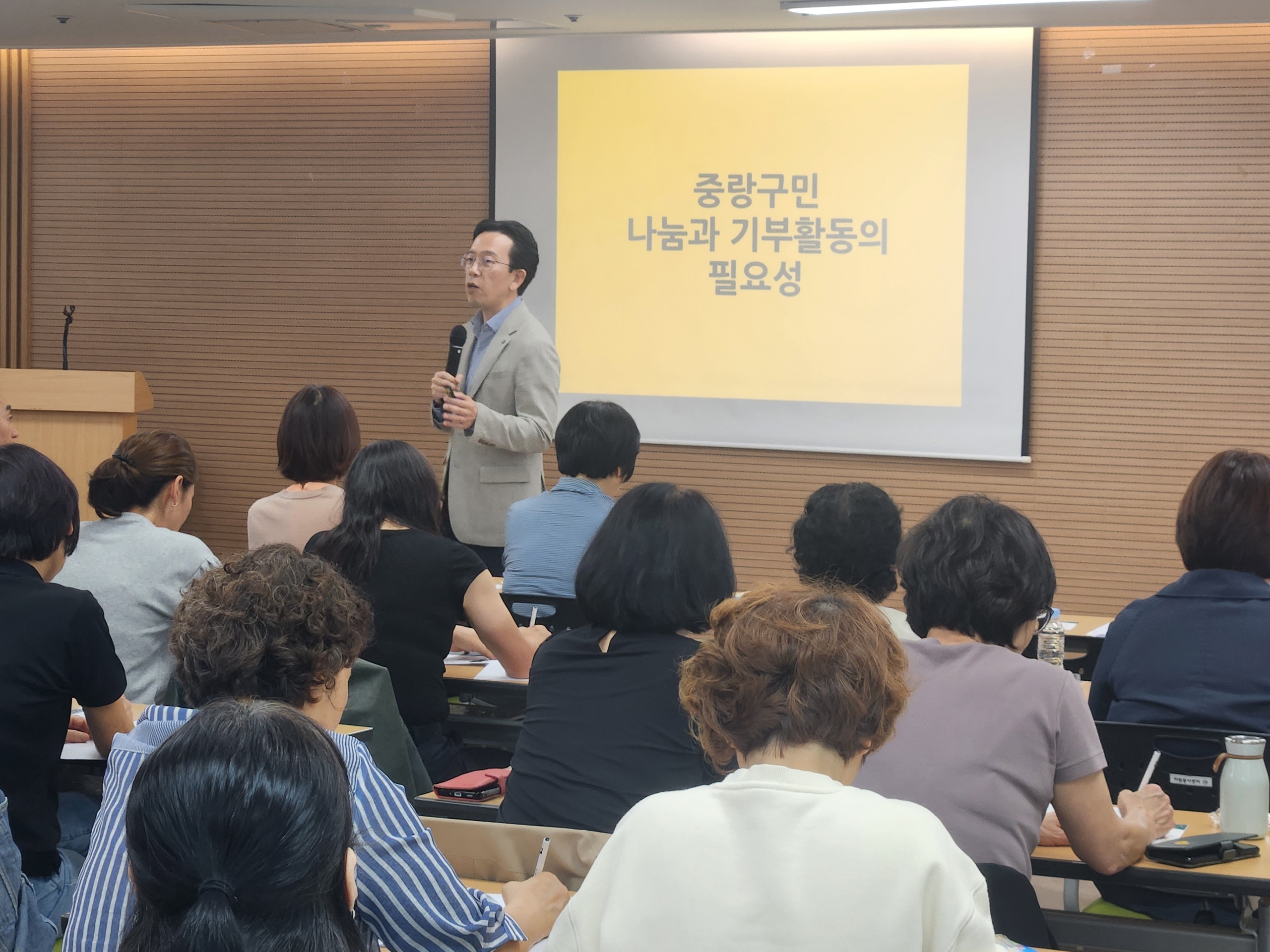2025년 10월 17일 오후 2시부터 4시까지, 중랑구 복지정책과가 주관하는 <2025년 하반기 중랑 동행 아카데미>에서 강정모 소장은 '나눔과 기부의 사회적 의미 함양'을 주제로 강의를 진행했습니다. 공공 복지 현장에서 활동하는 담당 공무원과 지역 주민 조직 역량 강화를 위해 마련된 자리였음에도 불구하고, 수강생들의 진지하고 뜨거운 참여 열기에 저 역시 큰 에너지를 받았습니다.