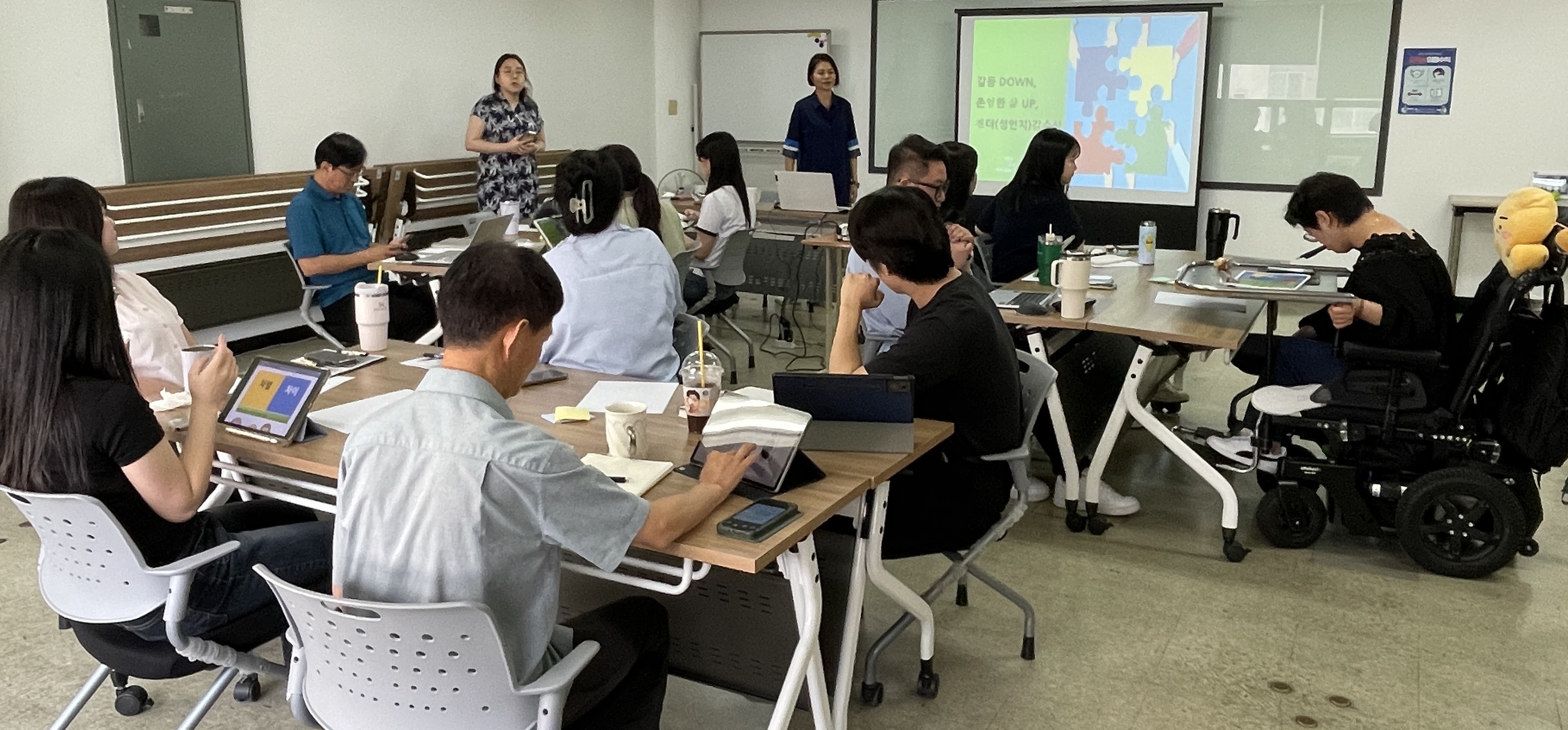 “활동 현장에서의 젠더 갈등, 정말 개인의 문제일까요?” 그 질문에서 이번 교육은 시작되었습니다. 2025년 8월 19일 화요일 오전, 양천구에 위치한 사단법인 장애와사회 교육실에서 장애인 단체 활동가 15여 명과 함께한 <갈등은 낮추고, 존엄은 높이는 젠더(성인지) 감수성 교육을 진행했습니다.