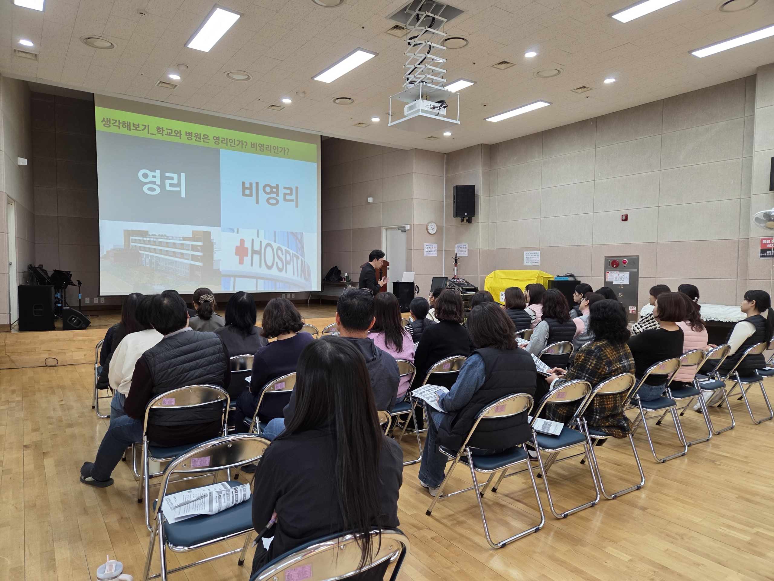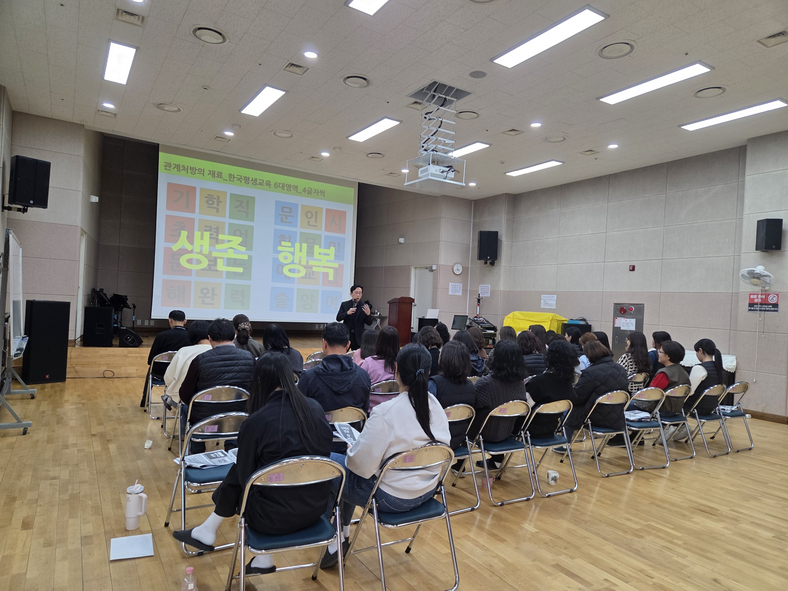 가을비가 다녀간 뒤 더욱 맑아진 지난 11월 10일 월요일, 동두천시노인복지관 4층 강당은 50여 명 전 직원의 배움에 대한 열기로 가득 찼습니다. 경기 북부 노인복지의 허브로서 어르신들의 행복하고 주체적인 삶을 위해 혁신적인 프로그램을 선도해 온 동두천시노인복지관은, 최근 지역사회와 함께하는 '스마트 돌봄'과 '선배시민 활동'을 통해 어르신을 단순한 수혜자가 아닌 지역의 리더로 세우는 데 큰 성과를 거두고 있습니다. 이번 교육은 이러한 성과를 넘어, 조직 내부의 내실을 다지고 종사자 개개인의 '성장 습관'을 정립하기 위해 마련된 시간이었습니다.