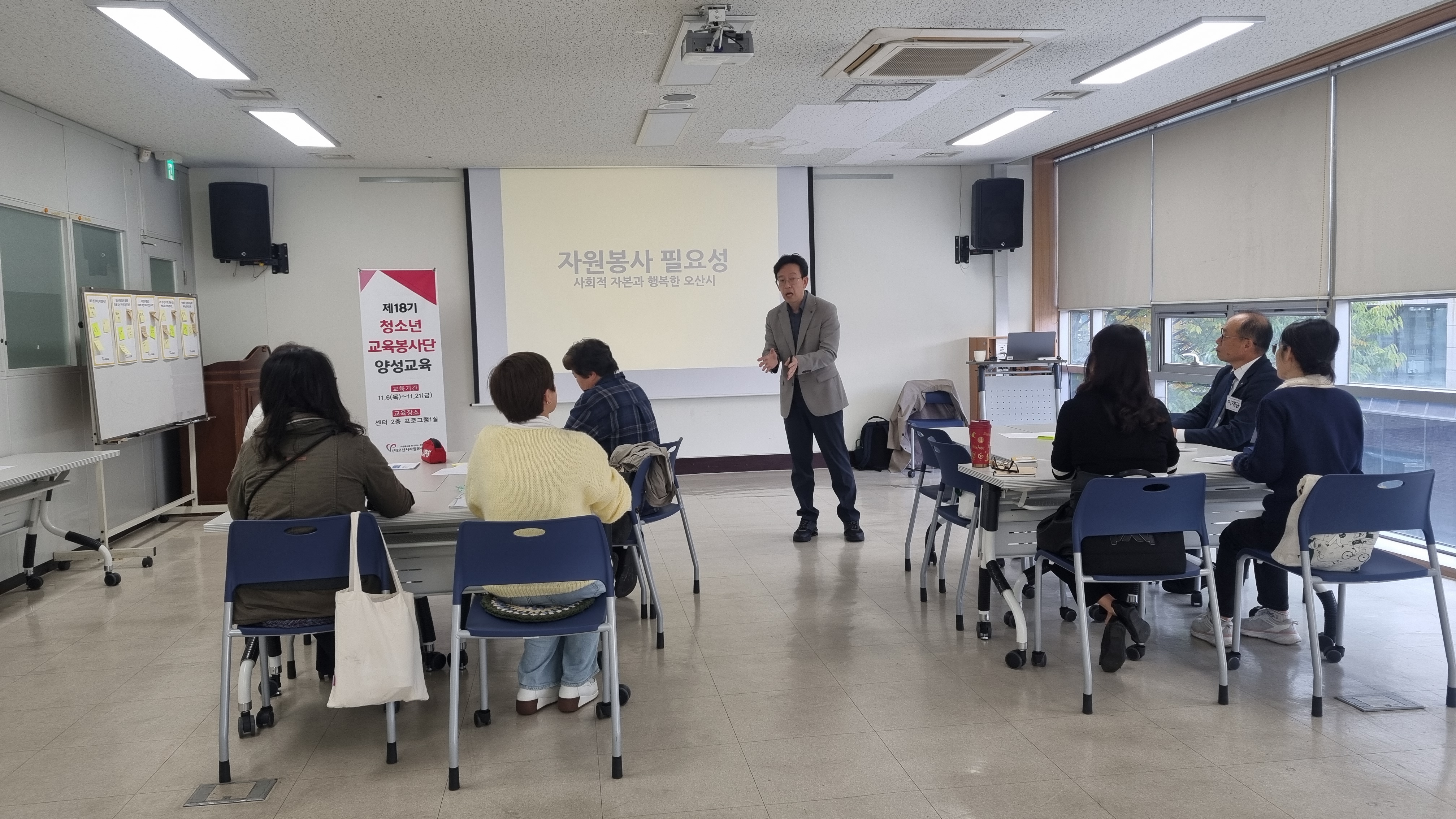 지난 11월 7일 금요일 오후, 오산시자원봉사센터 교육장은 20명의 예비 강사님들의 열정으로 달아올랐습니다. 2025년 가을, 단풍이 절정인 시기에 모인 이들은 2026년부터 오산 지역 중학교 교실을 찾아가 청소년들에게 '나눔의 가치'를 전파할 '제18기 청소년교육봉사단' 선생님들이셨습니다. 오산시자원봉사센터는 오랜 기간 체계적인 강사 양성 시스템을 통해 학교 방문 교육의 모범 사례를 만들어왔습니다. 이번 18기 교육은 이러한 전통을 이어받아, 단순히 지식을 전달하는 강사가 아닌 청소년의 삶을 이해하고 그들의 성장을 돕는 '시민 멘토'를 기르는 데 초점을 맞추었습니다.