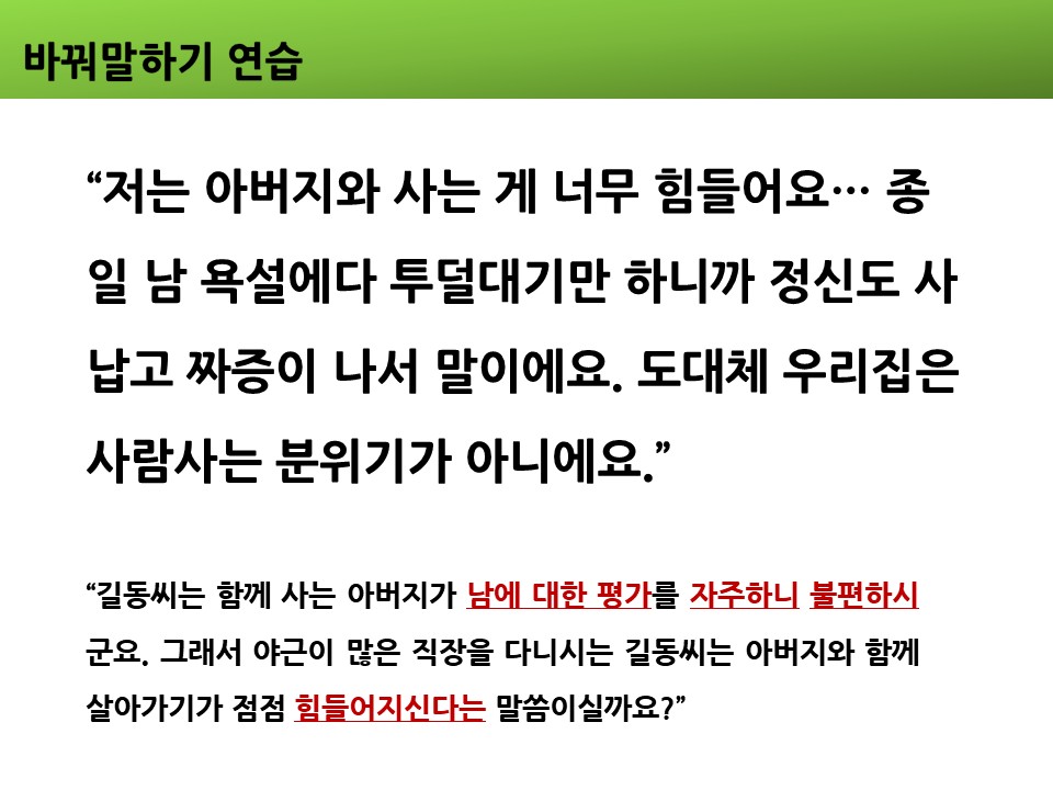 현장에서 실무자들이 겪는 가장 큰 고충인 ‘갈등 관리’에 대한 실전 방법도 다뤘습니다. 주민들의 날 선 불만(Position) 속에 숨겨진 진짜 욕구(Need/Want)를 찾아내는 ‘까시 빼기(바꿔 말하기)’ 실습 시간, 참여자들은 호기심으로 가득하였습니다. “왜 나만 일해?”라는 주민의 불평을 “혼자 하려니 벅차서 동료들의 도움이 필요하시군요”라고 번역해 주는 기술. 그것은 단순한 화술이 아니라, 상대의 마음을 읽어주는 공감의 언어였습니다. 영화 <프리덤 라이터스>의 한 장면처럼, 주민들을 ‘대상자’라는 집단으로 묶지 않고 고유한 한 ‘사람’으로 바라보는 것. 5시간의 열정적인 강의 끝에 우리가 도달한 결론은 결국 ‘사람’이었습니다. 대전에서의 하루가, 각 지역의 복지관으로 돌아가시는 선생님들의 발걸음에 ‘관계’라는 따뜻한 씨앗이 되었기를 바랍니다. 전국 사회복지관 지역조직화 담당자 여러분의 ‘사람 냄새나는’ 도전을 늘 응원합니다.