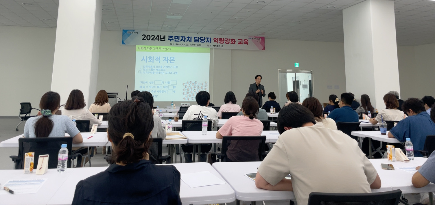 지난 2024년 9월 2일, 고양특례시 44개 동의 주민자치 담당 공무원들이 한자리에 모였습니다. 백석업무빌딩에서 진행된 이번 교육은 단순히 업무 지식을 전달하는 시간을 넘어, 고양시의 변화를 이끄는 핵심 주역으로서 담당자들의 성과를 확인하고 민관협치의 가치를 되새기는 소중한 자리였습니다. 현장의 최일선에서 주민과 행정을 잇는 담당자들의 헌신적인 노력은 고양시가 더 행복한 공동체로 나아가는 가장 튼튼한 뿌리가 됩니다.