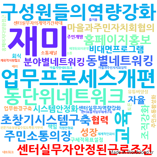 이번 과정을 통해 용산구마을공동체와 주민자치회를 활성화하는 용산구마을자치센터가 구심력과 팀워크를 마련하여, 안정적인 활동토대를 구축하는 계기가 되었으면 좋겠습니다.