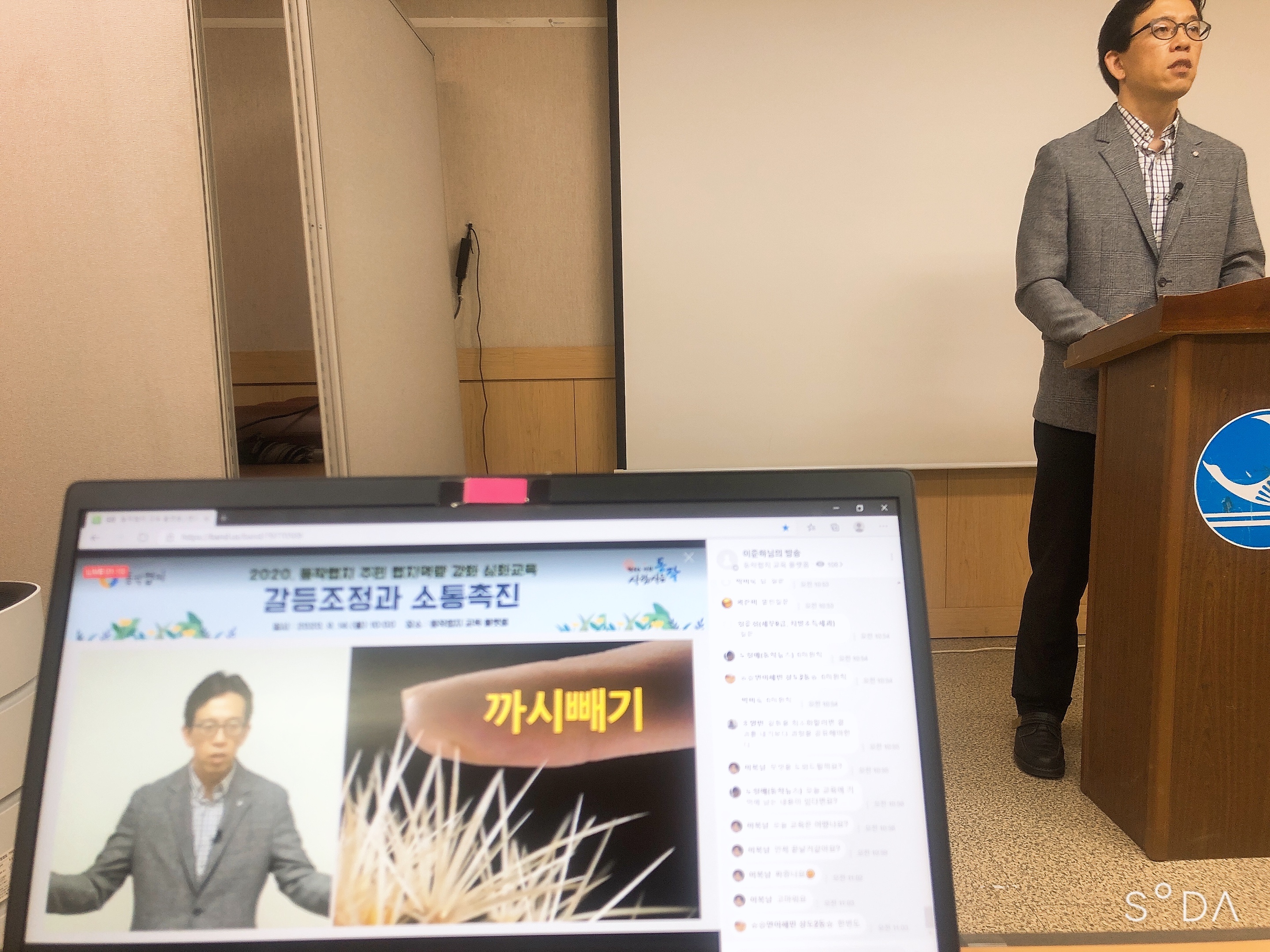민관협치팀이 좌석에 함께하였고, 기술진들도 교육에 참여하여 온오프 동시의 현장감을 살려 강의하였습니다. 주민들도 실시간 교육에 댓글로 많은 참여를 통해 온라인 교육에 대한 민관협치과의 노하우를 쌓아올리는 계기가 되었습니다. 저도 두 번째 온라인 강의라서 그런지 점점 노하우가 쌓여지는 듯 하였습니다.