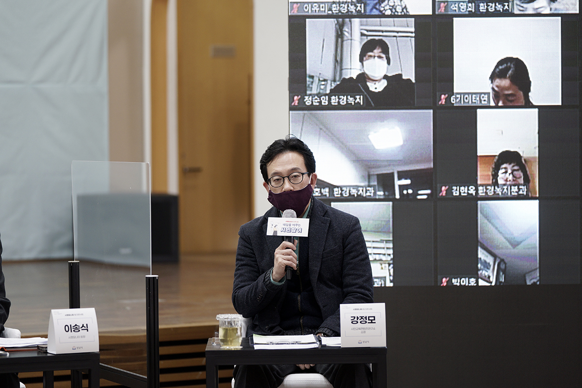 이어서 성남시 시민참여, 민관협치에 대한 서울혁신파크의 엄관용 실장의 진행으로 토크콘서트를 실시하였습니다. 원래는 온오프 병행을 하려고 하였으나 상황의 심각성으로 마스크 착용의 100% 온라인으로 변경하여 진행하였습니다. 패널로는 성남시 은수미 시장을 비롯하여, 한양대 이영재 연구교수, 이송식 시정모니터단 회장과 제가 참석하여 진행하였습니다.