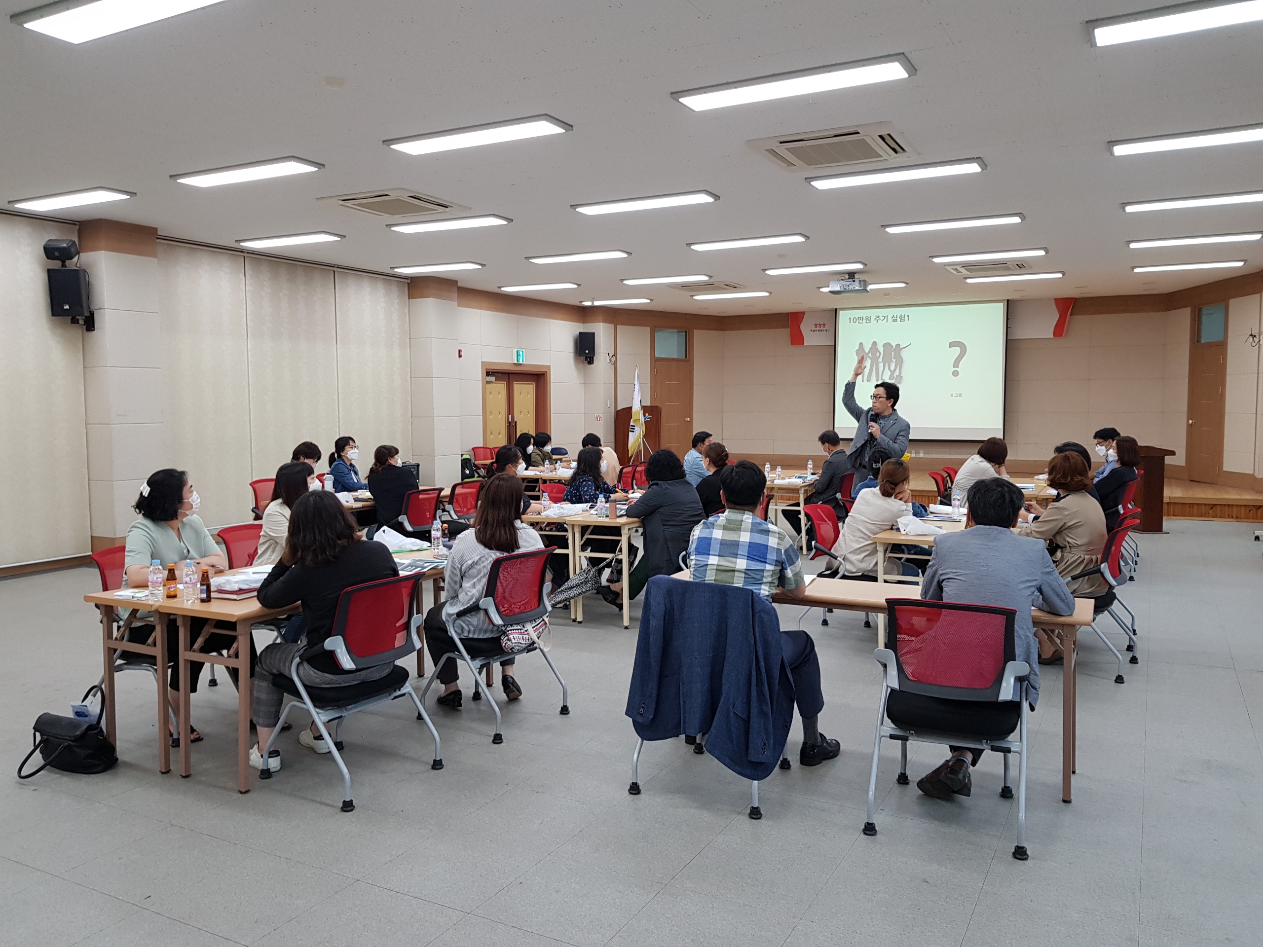 방역지침을 준수하여, 3배수의 강당에서 집합교육을 실시하였습니다.