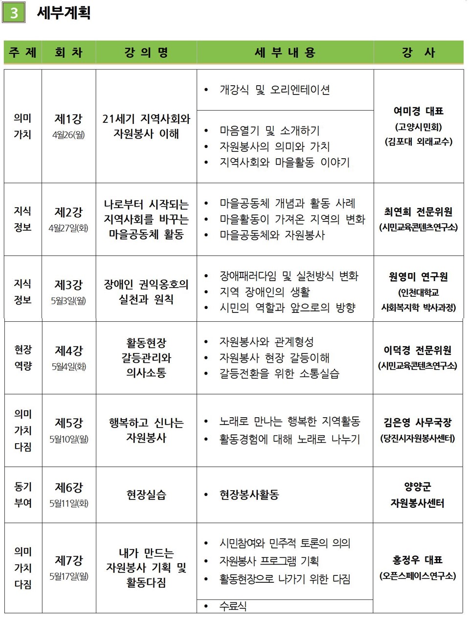 자원봉사가 마을공동체를 형성하는데 어떤 관계를 맺고, 네트워크를 해야하는지 이해하는 과정으로 기획하였습니다.