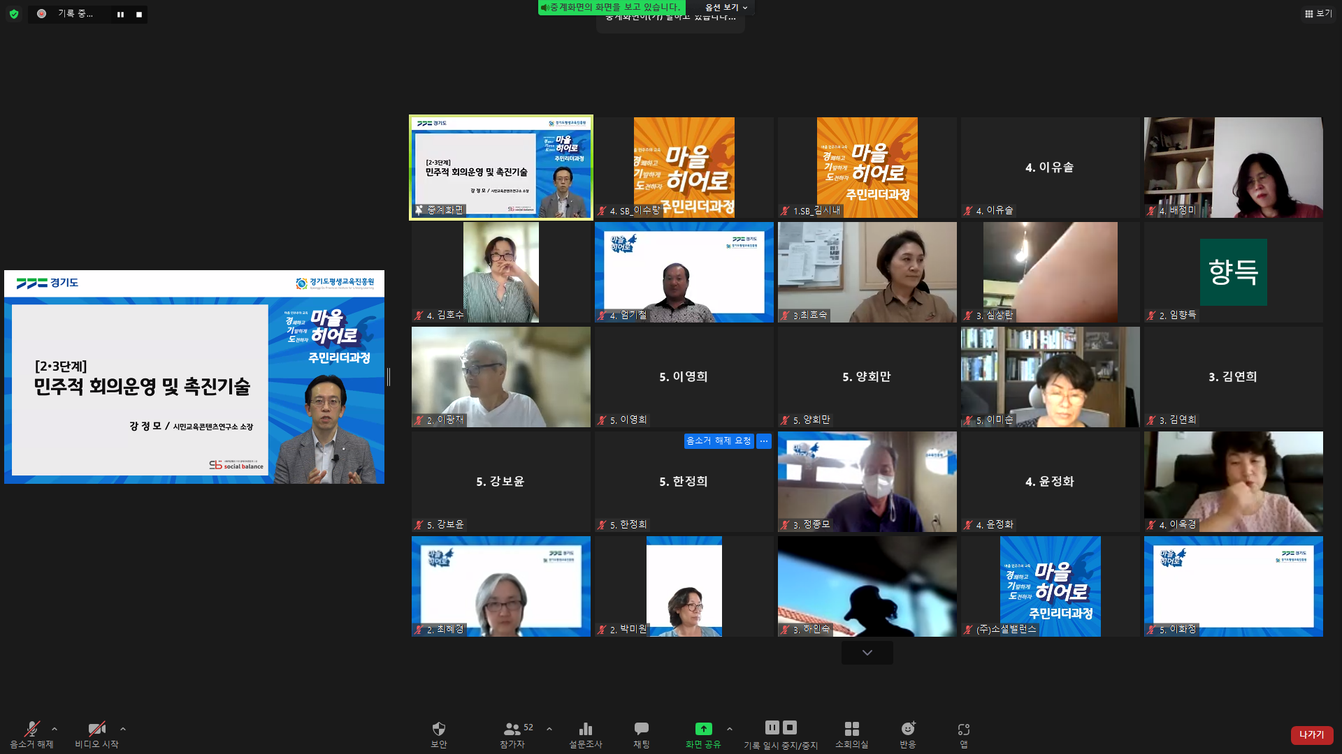 경기도의 마을활동가, 주민자치위원, 민관협치위원 분들이 참여하여 강의를 수강하였습니다.