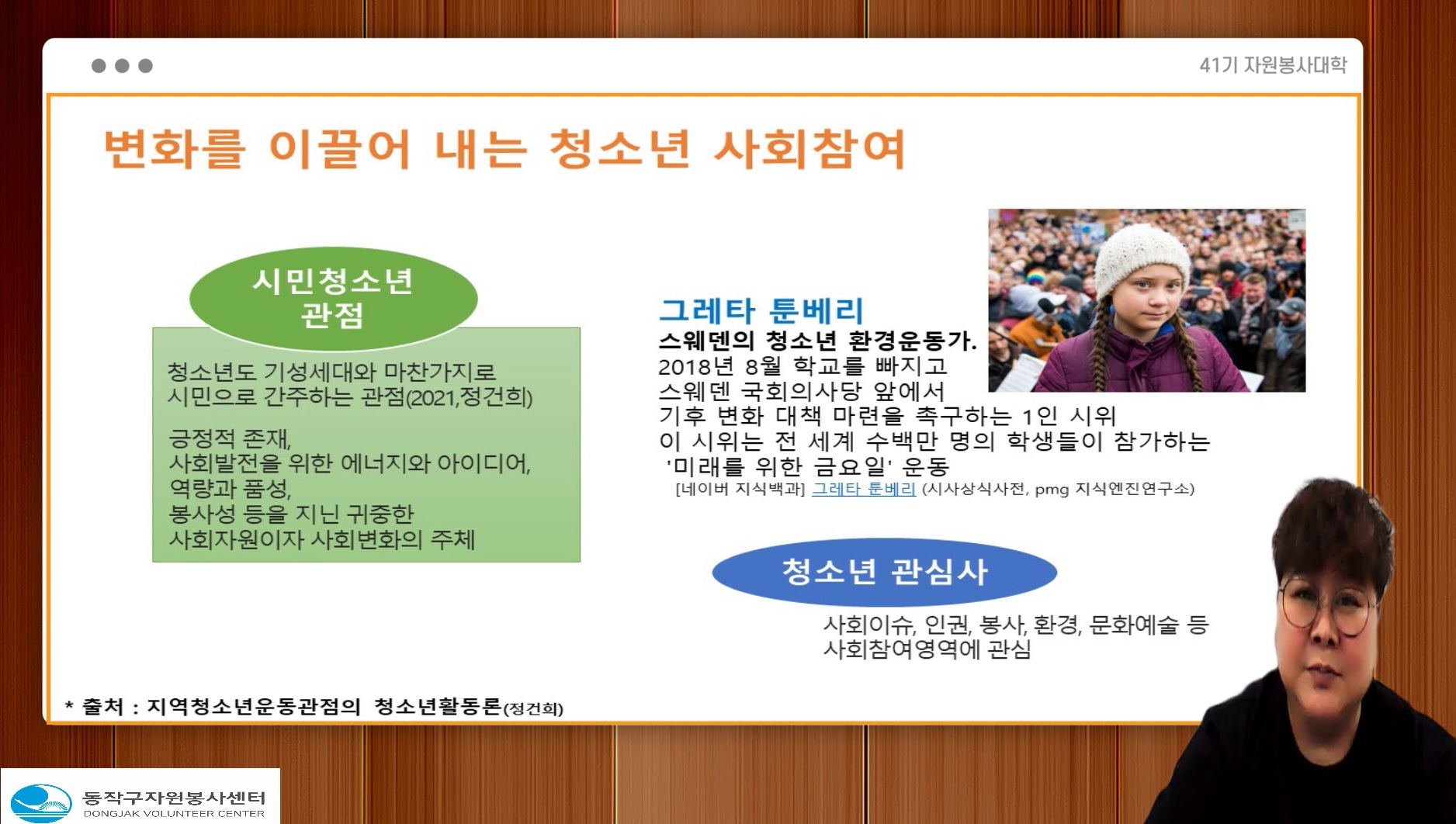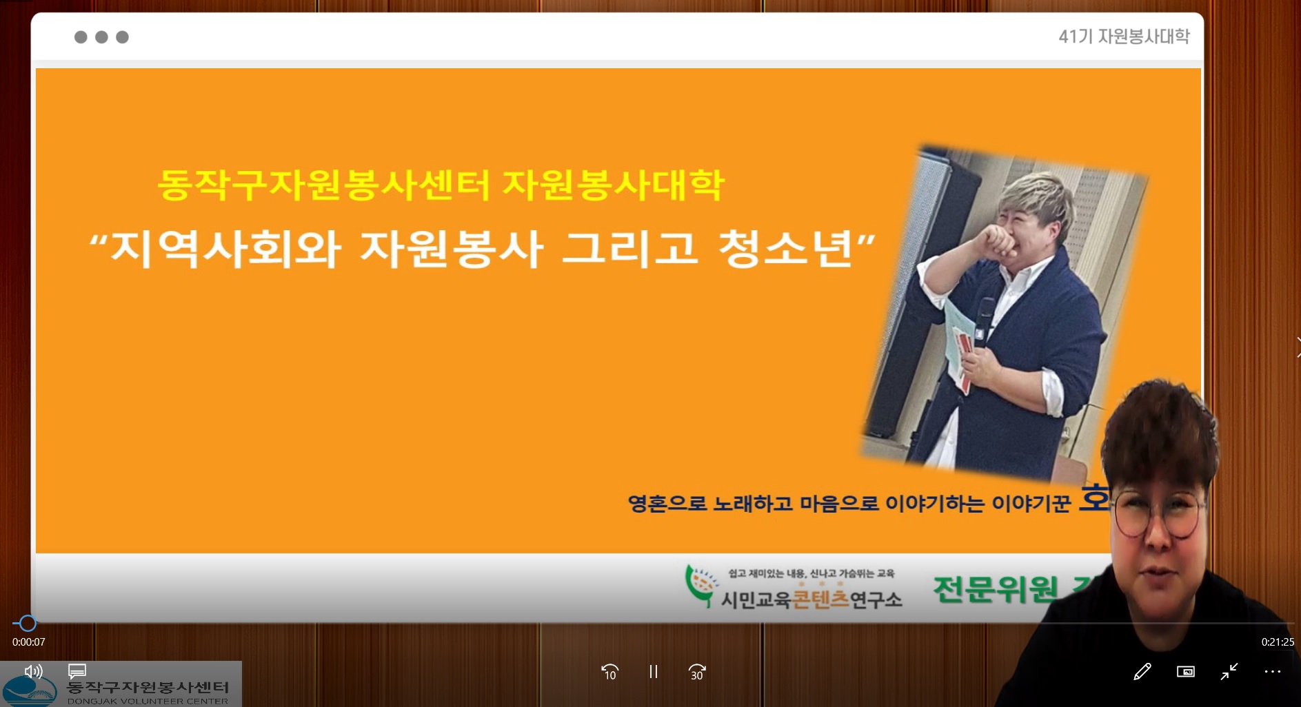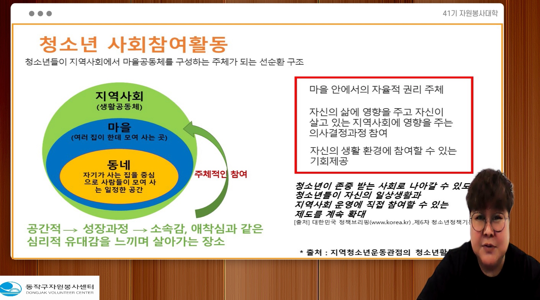 <지역사회와 자원봉사 그리고 청소년> 이라는 주제로 강의를 진행하였습니다.