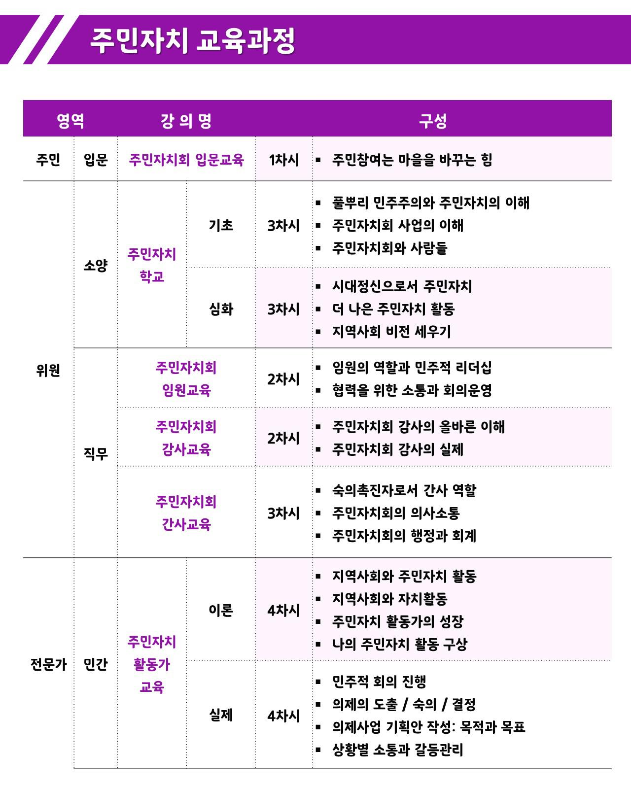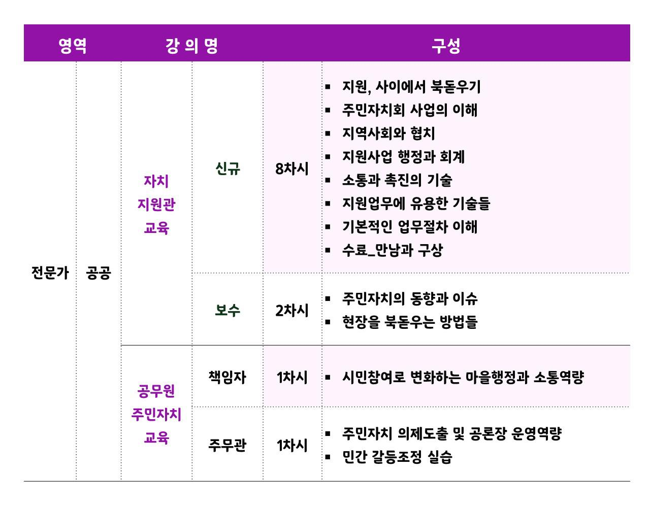 주민자치 활동가 교육 / 자치지원관 교육 / 공무원 주민자치 교육