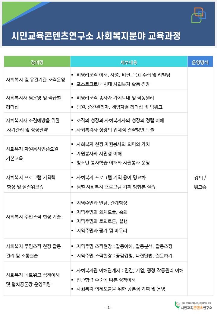 사회복지 프로그램 기획력 향상 및 실전워크숍