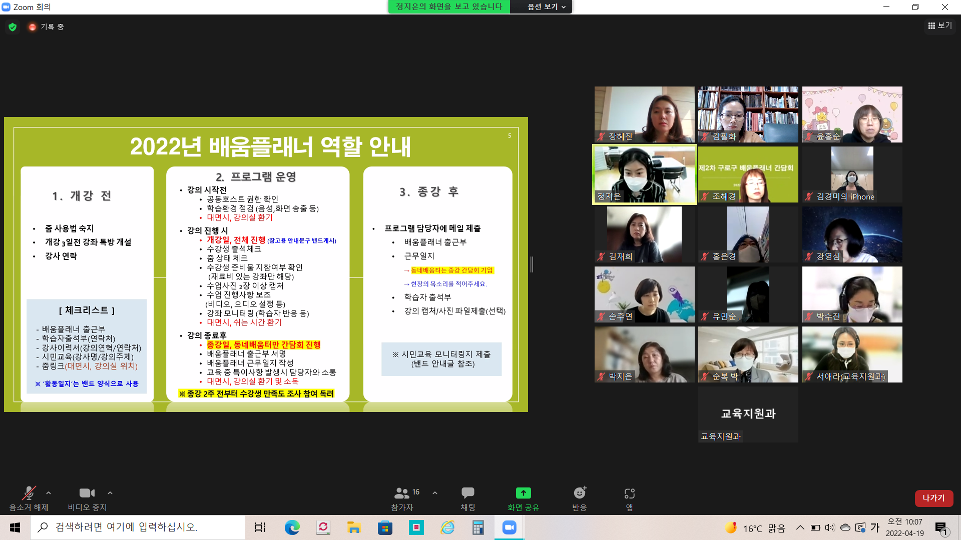 2022년 상반기 구로구 평생학습관에서 시민참여분야 강좌를 실시하였습니다.
