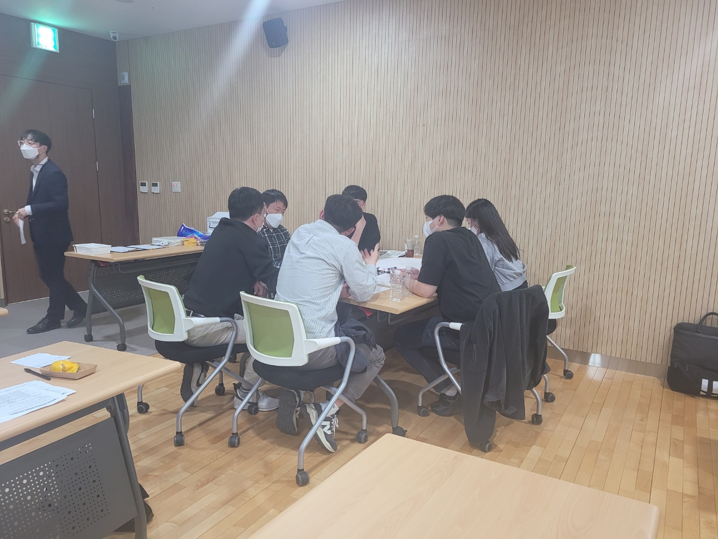 두 번째 교육 45분은 두 개의 조를 나누어 주제를 선정하고 토론을 통해 문제를 찾아 목표와 목적을 세우고,
