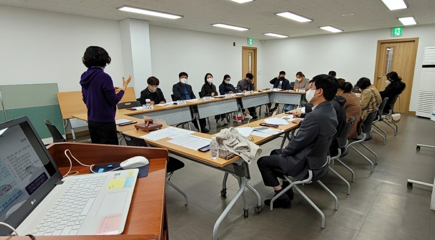 슬라이드 교육을 할 수 없어 강의자료를 출력하여 진행하였습니다. 다소 열악한 상황이었지만 위원님들 대부분이 역량강화 교육을 받아본 경험이 없어 매우 진지하게 참여하였습니다. 평소 사각지대 발굴을 위한 고민이 묻어나는 질문과 이를 해결하기 위한 방안등에 대한 방안이나 문제점 등을 피드백하며 참여자 소통학습의 장이 되었습니다.