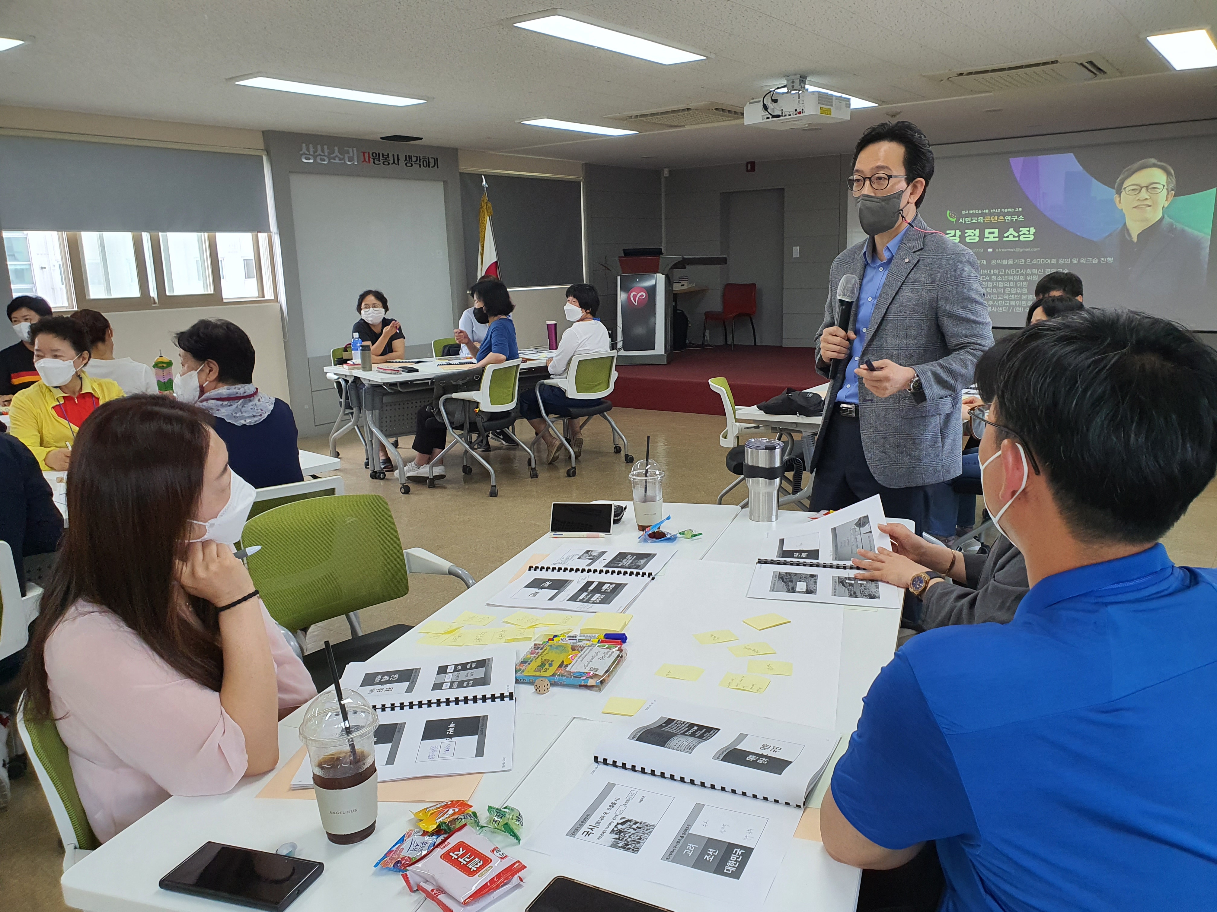 22년 6월에 2회 차에 걸쳐 수원시자원봉사센터에서 자원봉사리더 및 단체임원들을 대상으로 자원봉사의 의미와 가치를 회원들에게 설명할 내용과 언어를 환기하는 시간과 함께 자원봉사 조직운영을 위한 리더십 기술을 연습하였습니다.