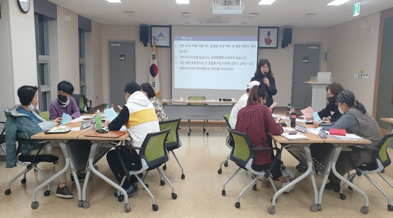 한솔동 주민자치회는 직장인들이 많아서 교육과 회의를 저녁 시간에 하는 것이 인상적이었습니다. 주민자치회의 갈등을 들여다보며 갈등의 원인과 협력적 문제해결의 과정을 이해하면서 소통역량을 강화하는 것이 중요하다는 인식을 높이는 시간이었습니다.