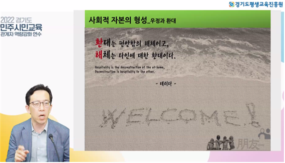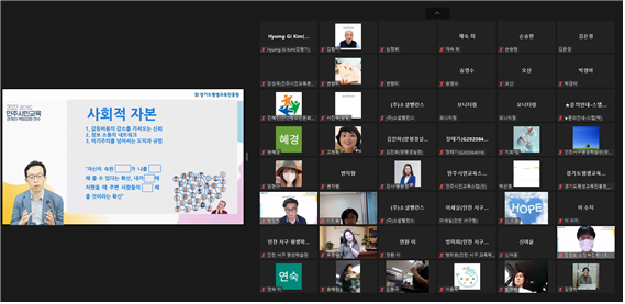 22년 7월 7일 경기도평생학습진흥원이 주최하고, (주)소셜밸런스가 주관하는 경기도 민주시민교육 관계자 역량강화 연수에서 <시민참여는 지역을 바꾸는 힘>이라는 제목으로 마을/동네 민주주의와 주민자치에 대해 온라인 교육을 실시하였습니다.