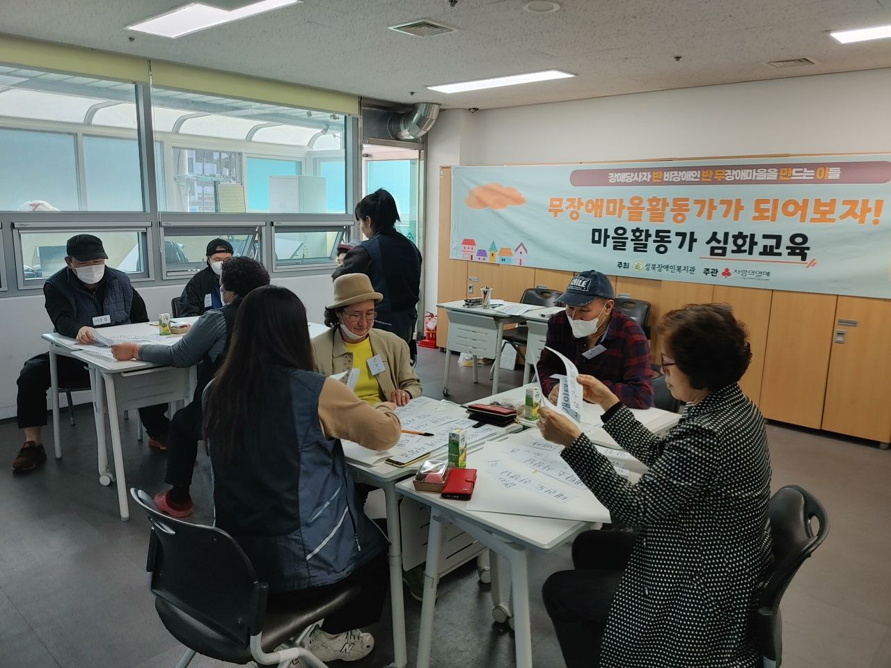 3월부터 4월까지 총 5회에 걸쳐 무장애마을활동가 양성을 위한 열린주민교육과 무장애마을활동가 심화교육을 진행했습니다. 성북장애인복지관이 주최하고 사랑의열매가 주관한 이번 교육은 장애당사자와 비장애인이 무장애마을을 만들기 위해 힘을 모으는 자리였습니다.