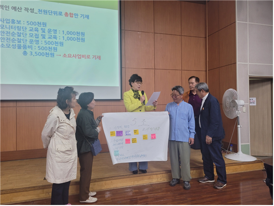 위원들의 참여도가 높았고 적극적으로 의견을 개진하여 우리 동에 맞는 의제를 찾아가는 과정을 배우는 의미 있는 시간이 되었습니다.각 조에서 발굴된 의제를 발표하고 공유하면서 강의를 마무리 하였습니다.