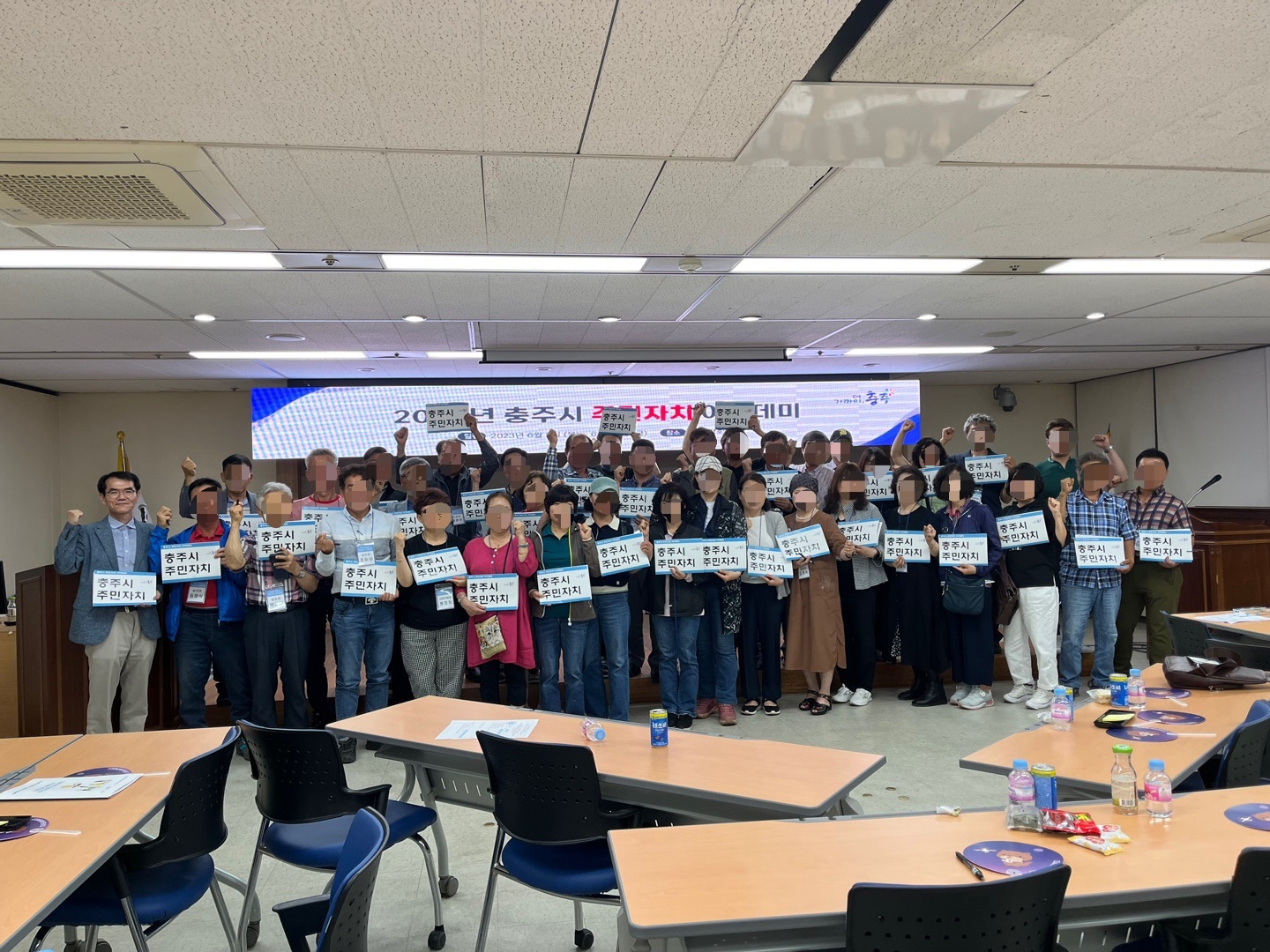 지난 6월 8일 저녁, 충주시 시청에서 <주민자치 활동현장 기본이해>라는 제목으로 특강을 진행했습니다. 농번기임에도 많은 주민자치위원님들이 참여하셨습니다. 이 프로그램은 ‘2023년 충주시 주민자치 활성화를 위한 컨설팅’의 한 부분이며, 한국공교육원과 시민교육콘텐츠연구소가 협업으로 주관하였습니다. 수안보를 비롯한 읍면동 단위별로 주민자치위원회나 주민자치회의 임원 여러분이 참여자입니다. 마을별로 3~6인 정도됩니다.