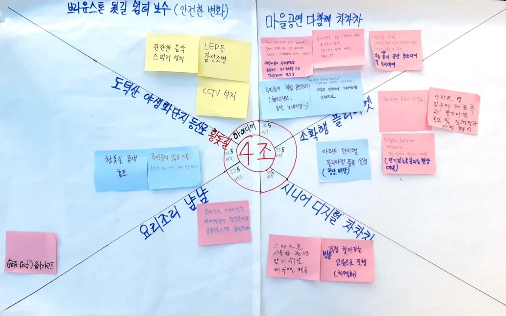 이덕경 전문위원이 맡은 테이블은 지역민이 통장 한 분이었고, 나머지는 철산4동 공무원들이었습니다. 철산4동 거주자보다도 다른 지역에 거주하는 공무원들이 더 많은 상황에서도 ‘우리 동네에서 이런 사업을 진행한다고 생각하면 주민의 입장에서는 어떤 것들이 고려되어야 할까요?’라는 질문에 고민과 토의를 거쳐 의미 있는 제안들을 해주셨습니다.