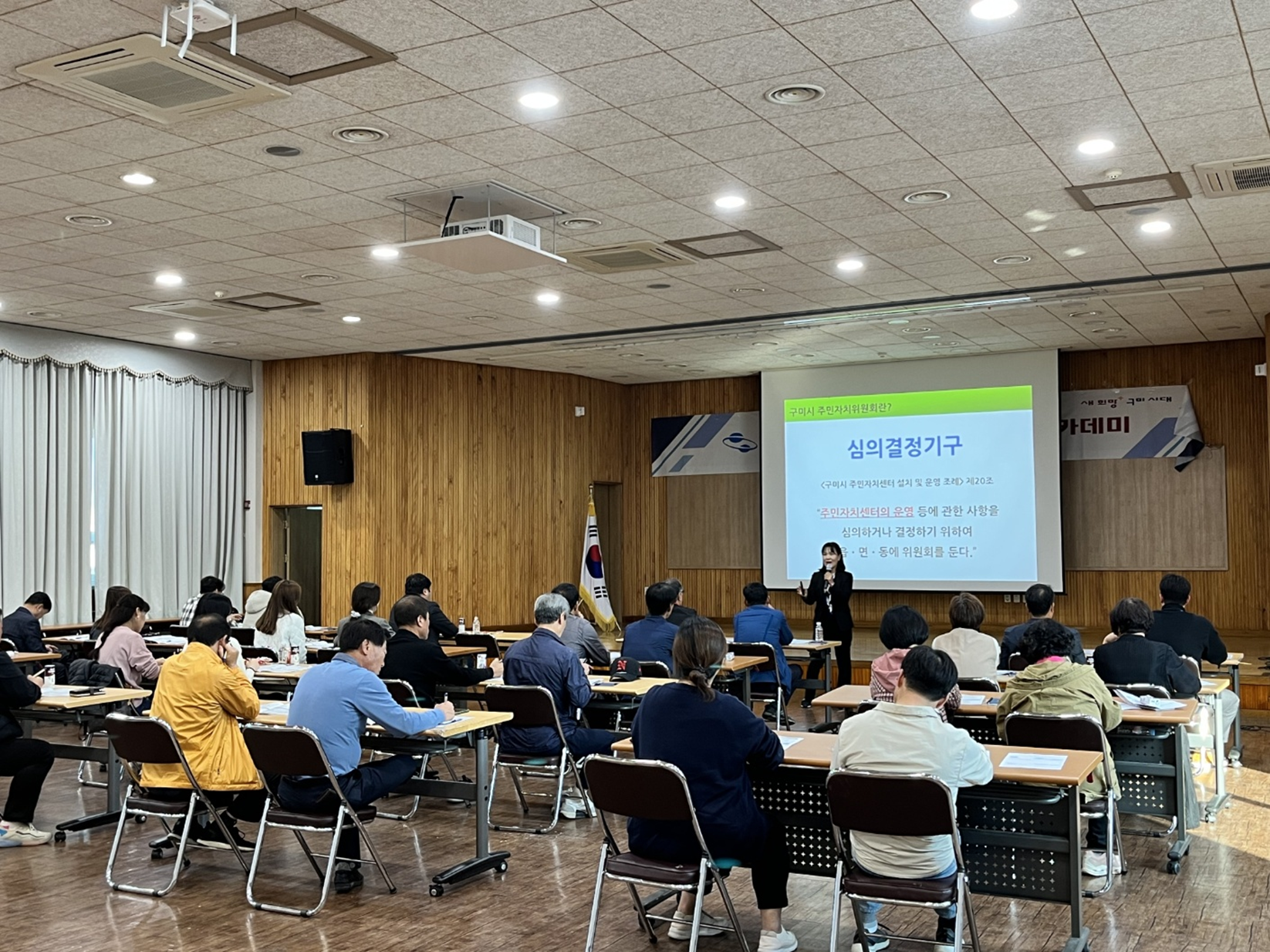 23년 11월 1일과 3일에 <구미시 주민자치센터 프로그램 운영역량 강화교육>을 주제로 권역별 행정복지센터에서 2시간씩 강의를 하였습니다. 구미시는 주민자치센터를 주민자치위원회에서 운영해 본 경험이 없어서 주민자치 위원들 대상으로 권역별로 나누어 자치센터 프로그램 운영을 효과적으로 할 수 있도록 전반적인 이해와 역량을 강화하는 교육을 진행하였습니다.