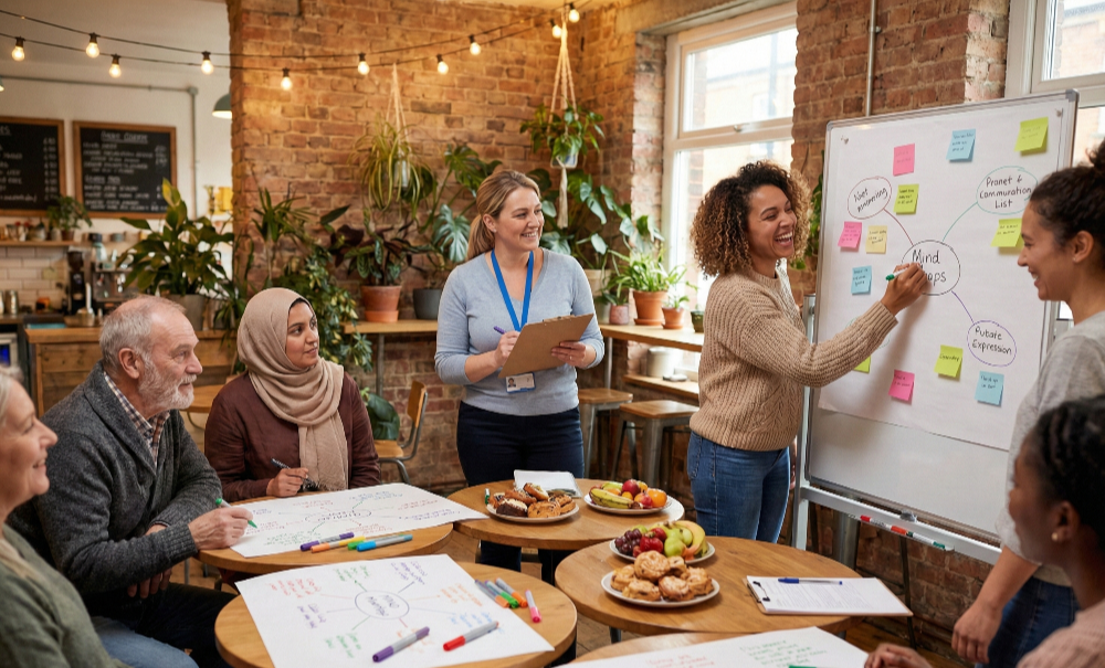 마지막으로 사회복지사는 주민의 회의 참여 목적이 자신과 다를 수 있음을 인정해야 한다. 사회복지사가 사업 성과에 집중한다면, 주민은 이웃과 소통하고 교류하려는 내면적 욕구를 지닌다. 이는 주민 조직을 지탱하는 건강한 동력이므로, 사회복지사는 주민의 태도에 서운해할 필요가 없다. 지난 논의를 담담하게 요약해주고, 대화가 곁가지로 샐 때는 20분 간격으로 진행 상황과 남은 시간을 안내하며 유연하게 대처하면 충분하다. 회의 용어를 명확히 구분하는 일은 소통의 혼선을 줄이는 첫걸음이다. 기획과 계획, 토론과 토의를 뭉뚱그려 다룰 때 구성원의 피로도는 높아진다. 사회복지사의 리더십은 회의 테이블 위의 용어를 선명하게 정의하는 것에서 시작된다.