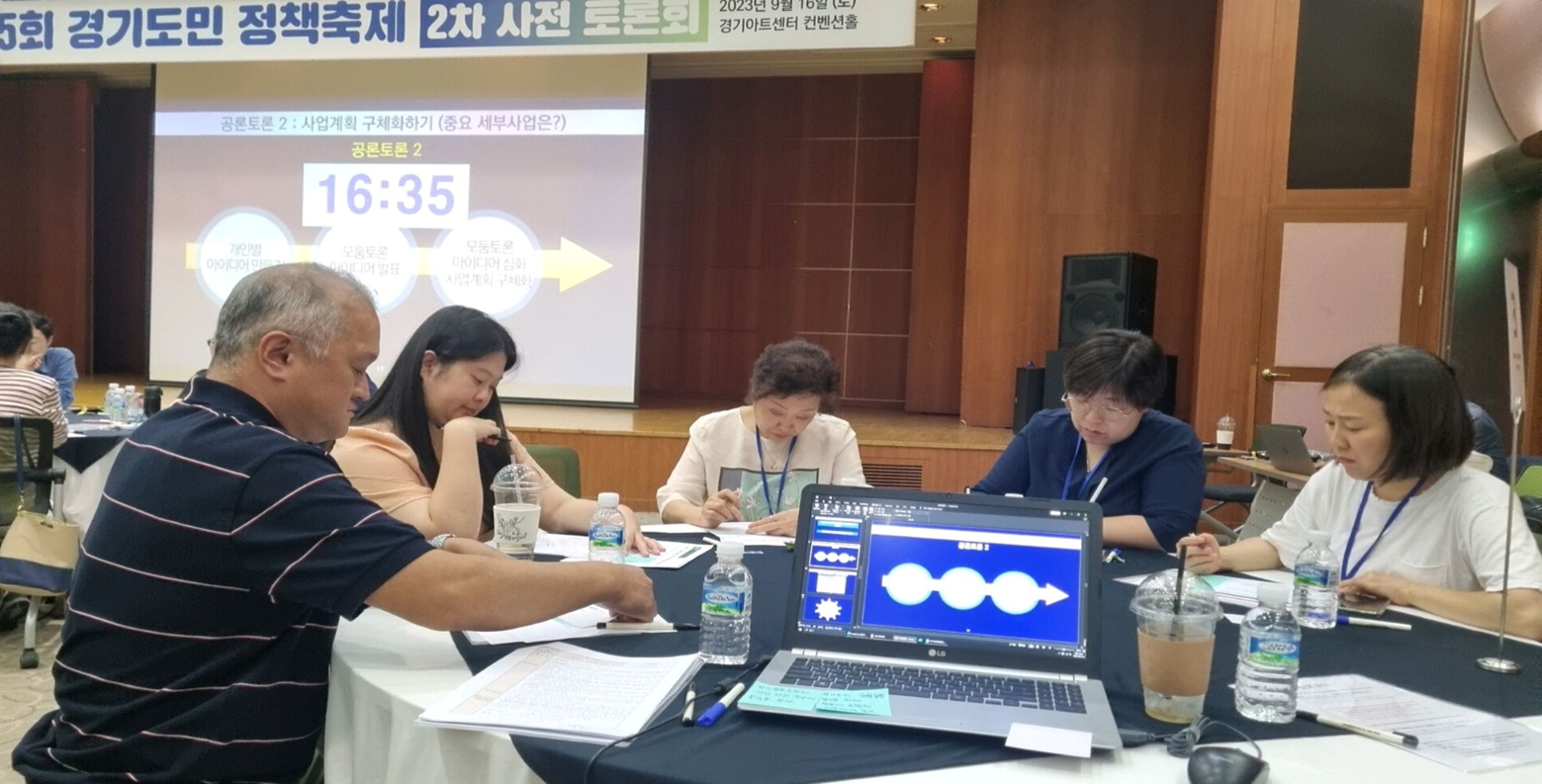 10월 16일 2차 토론회는 1차 때와 동일한 토론자들이 함께 하여 한층 토론의 깊이를 느낄 수 있었습니다. 도민의 니즈를 반영한 사업계획서를 작성해 해당과로 보내는 활동이 이어졌습니다. 하나하나의 토론 주제들이 경기도민을 위한 놀라운 정책으로 실현되길 바라며 본토론이 열리는 그날을 기다렸습니다.