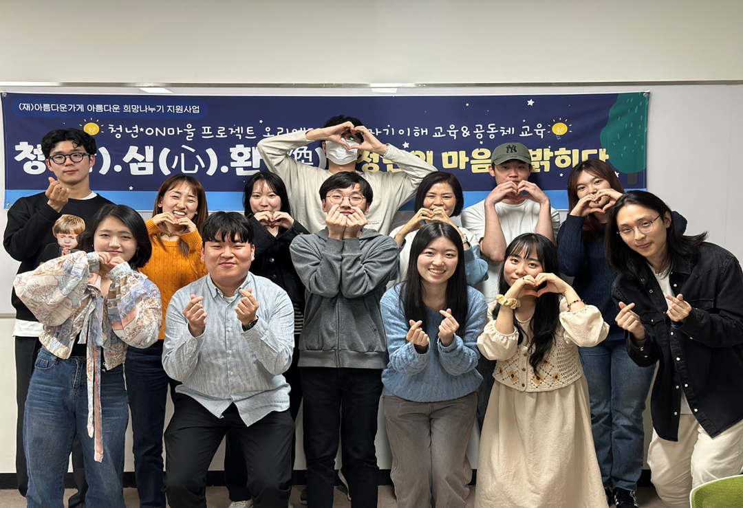 3년 전부터 복지관에서 청년들을 대상으로 지속적으로 실시한 청년 ON마을 공동체 프로젝트 과정입니다. 직장인, 취준생, 대학생 등 다양한 입장과 3년 차, 2년 차, 처음 참여한 이들도 있어 활동경험도 다르지만 서로 이해하고 존중하는 화기애애한 교육 분위기였습니다.