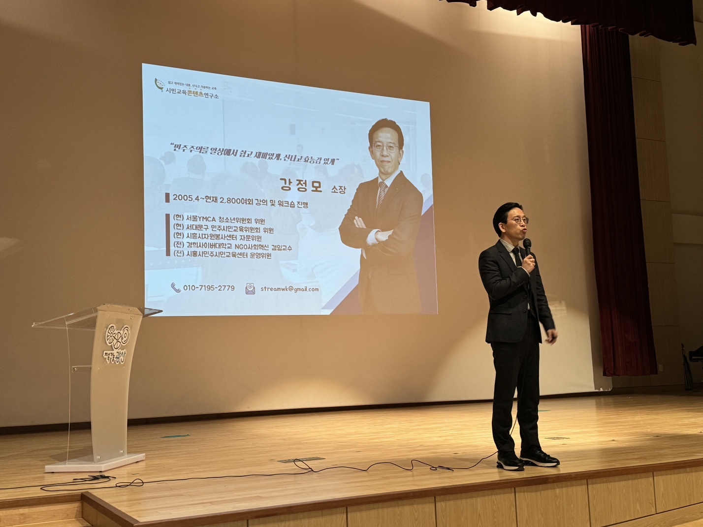 24년 2월 28일 광주광역시 광산구 지역사회보장협의체에서 이웃지킴이(골_Keeper) 활동향상을 위한 역량강화 과정을 수완문화체육센터(광산구 왕버들로132번길 11)에서 진행하였습니다. 광산구 전 洞 지역사회보장협의체 위원 500명을 250명씩 2회로 나눠서 강정모 소장과 진선임 위원이 팀티칭으로 진행하였습니다.