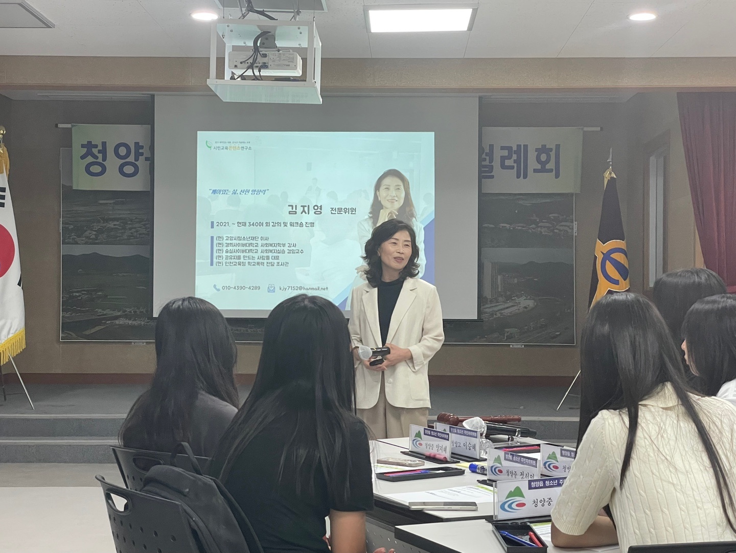 24년 8월 14일 청양읍행정복지센터에서 청양읍 청소년주민자치회 위원을 대상으로 역량강화 교육을 진행했습니다.