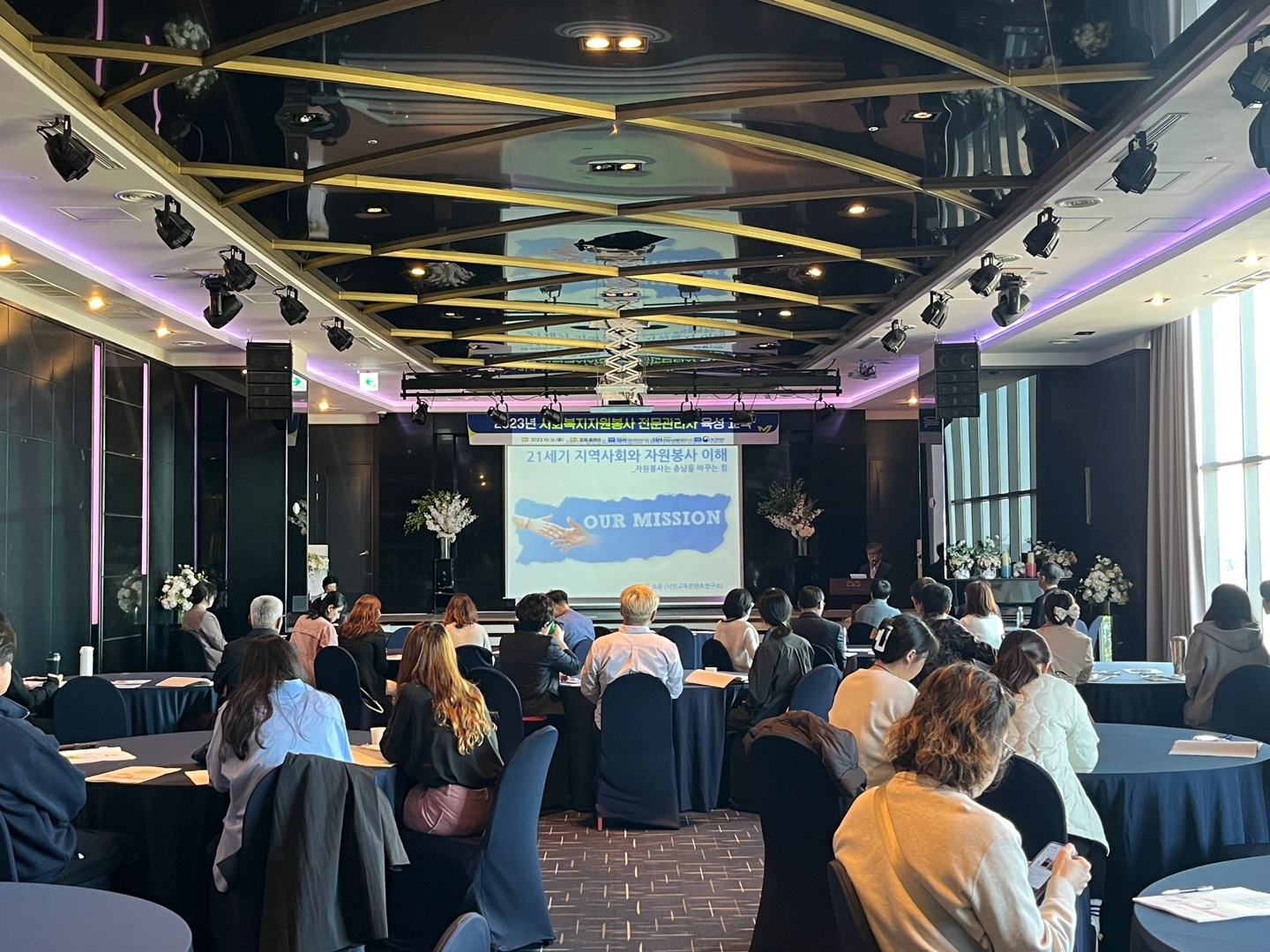 10월 16일 충청남도사회복지협의회에서 주관하는 사회복지자원봉사전문관리자들을 위한 보수교육을 보령 리조트에서 실시하였습니다.
