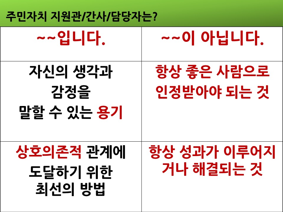 [강정모 소장] 성북구 주민자치 실무자(간사, 지원관, 담당자) 워크숍 진행_사람이 온다는 건 어마어마한 일
