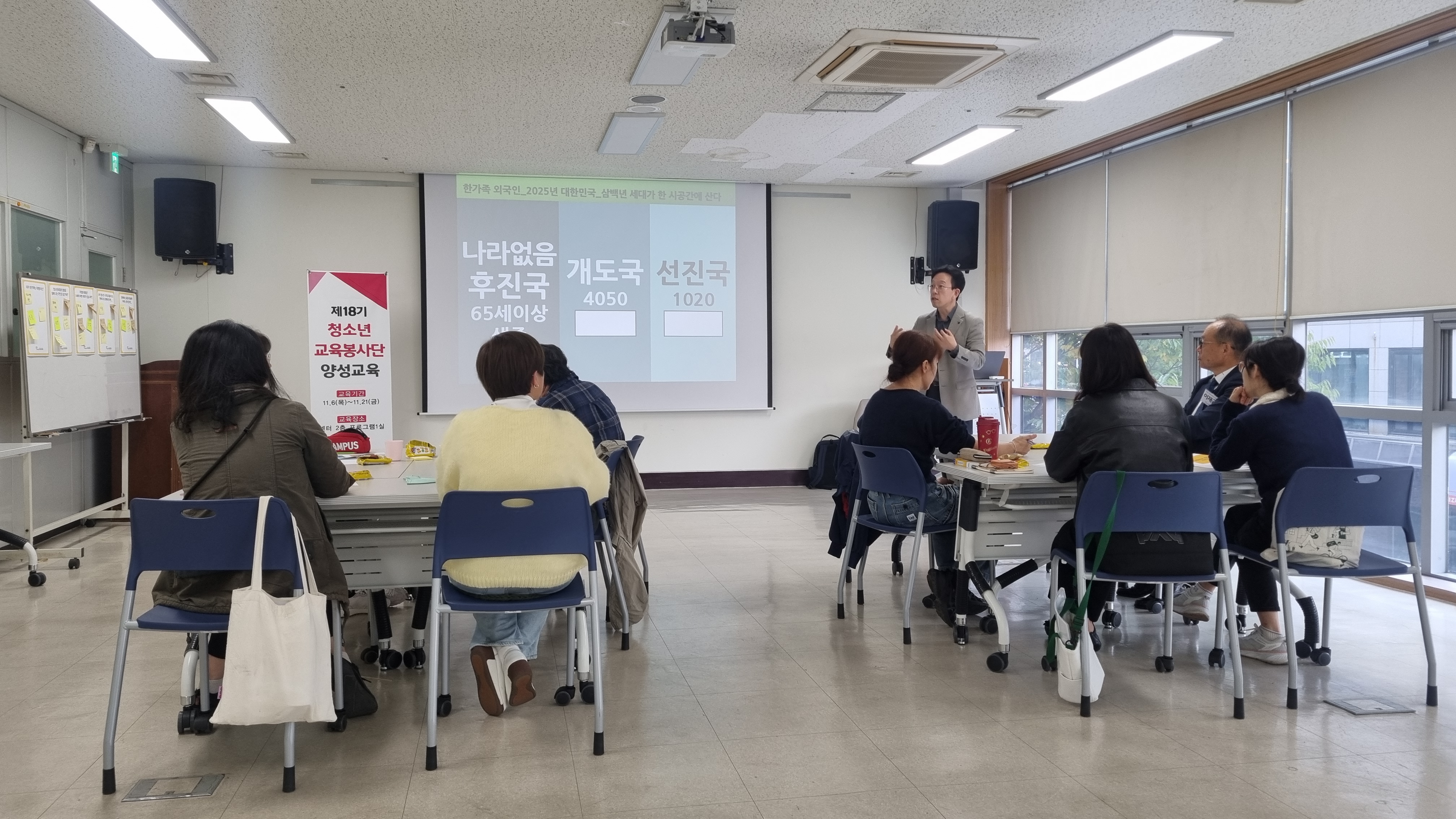 지난 11월 7일 금요일 오후, 오산시자원봉사센터 교육장은 20명의 예비 강사님들의 열정으로 달아올랐습니다. 2025년 가을, 단풍이 절정인 시기에 모인 이들은 2026년부터 오산 지역 중학교 교실을 찾아가 청소년들에게 '나눔의 가치'를 전파할 '제18기 청소년교육봉사단' 선생님들이셨습니다. 오산시자원봉사센터는 오랜 기간 체계적인 강사 양성 시스템을 통해 학교 방문 교육의 모범 사례를 만들어왔습니다. 이번 18기 교육은 이러한 전통을 이어받아, 단순히 지식을 전달하는 강사가 아닌 청소년의 삶을 이해하고 그들의 성장을 돕는 '시민 멘토'를 기르는 데 초점을 맞추었습니다.