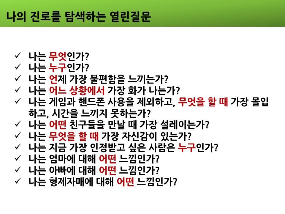 청소년기는 끊임없이 남과 나를 비교하며 자존감이 낮아지기 쉬운 시기입니다. 인생의 구조를 천(시대), 지(환경/부모/재능), 인(노력/의지) 세 가지로 나누어 설명했습니다. "태어난 시대나 부모님, 타고난 외모는 우리가 선택하지 않은 '천'과 '지'의 영역입니다. 이것 때문에 괴로워하지 마세요. 우리의 승부처는 바로 내가 선택하고 바꿀 수 있는 '인(人)'의 영역에 있습니다." 정신과 의사이자 현대철학자인 라캉의 말처럼 "타인의 욕망을 욕망하는 삶"이 아닌, 내 삶의 주인(Owner)이 되어 스스로 선택하고 책임지는 태도야말로 민주시민의 기본 자질이자 진정한 진로 설계의 시작점임을 강조했습니다.