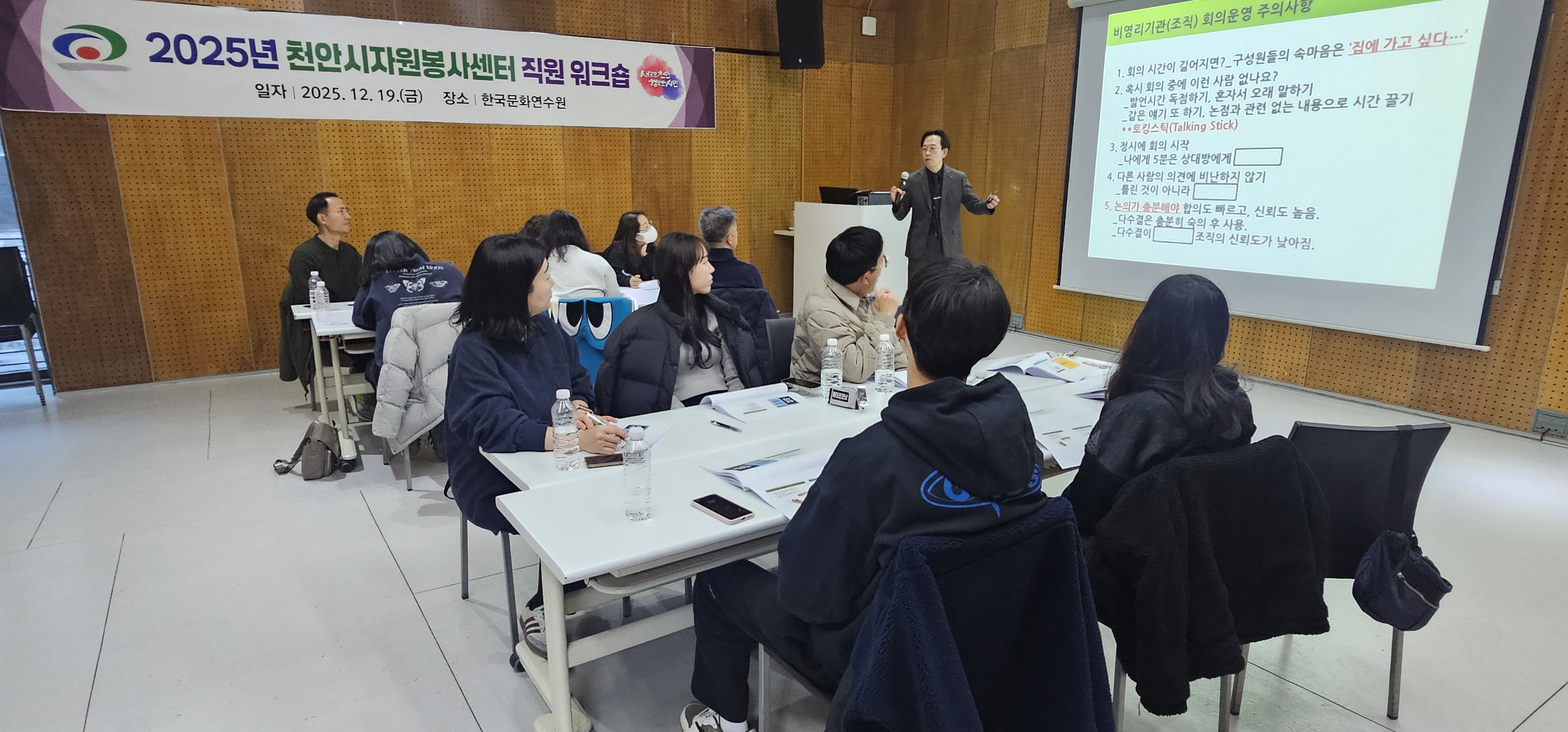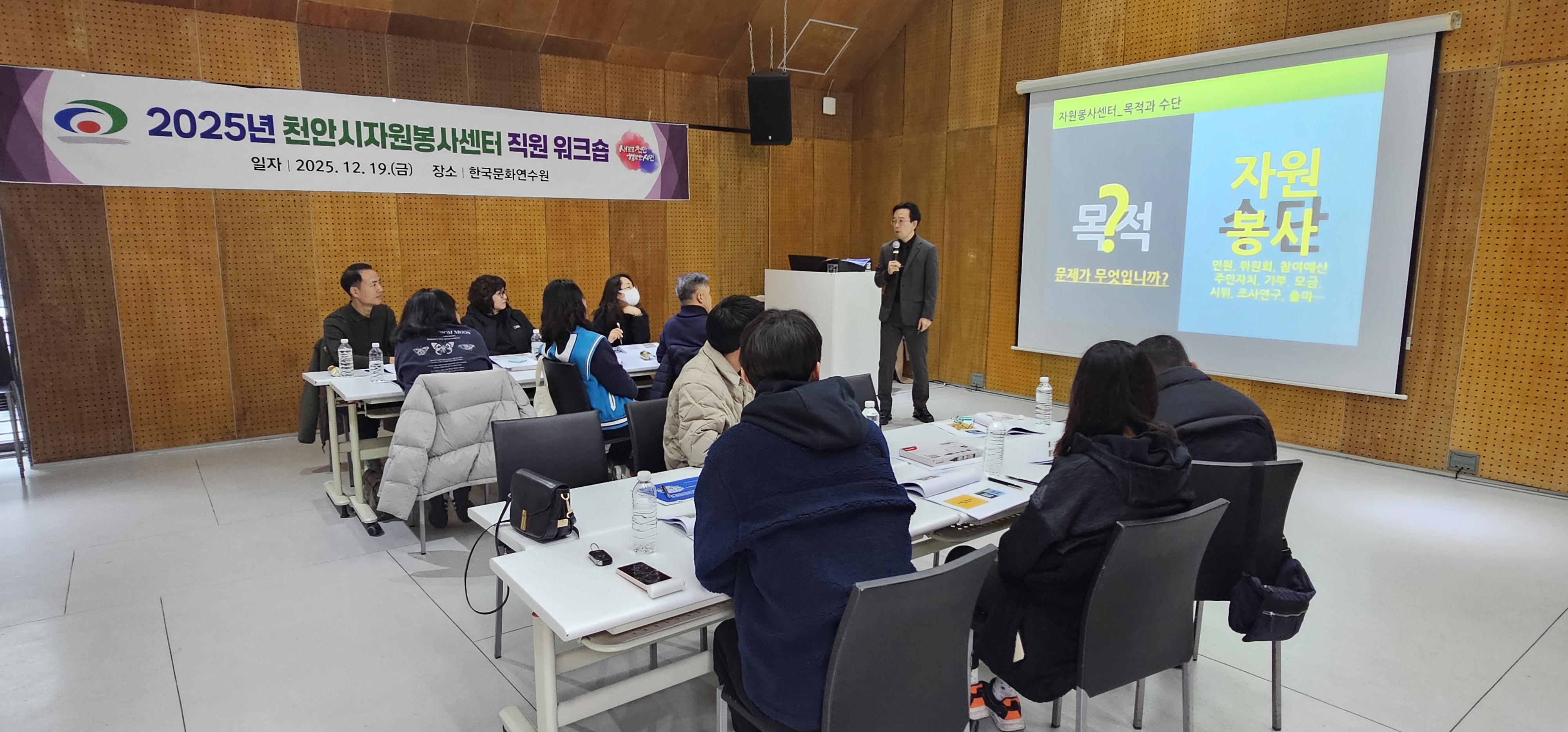 이번 워크숍은 천안시자원봉사센터가 겪는 직무 현장의 갈등을 '성장을 위한 기회'로 정의하고, 함께 대안을 도출하는 뜻깊은 시간이었습니다. “변화시킬 수 있는 것을 변화시키는 용기와 변화시킬 수 없는 것을 받아들이는 침착함, 그리고 그 차이를 구별하는 지혜를 얻는 시간이었습니다.” 천안시자원봉사센터는 이번에 다진 소통 역량을 바탕으로 2026년에도 시민과 봉사자가 함께 행복한 천안을 만들기 위해 더욱 힘차게 나아갈 것입니다.